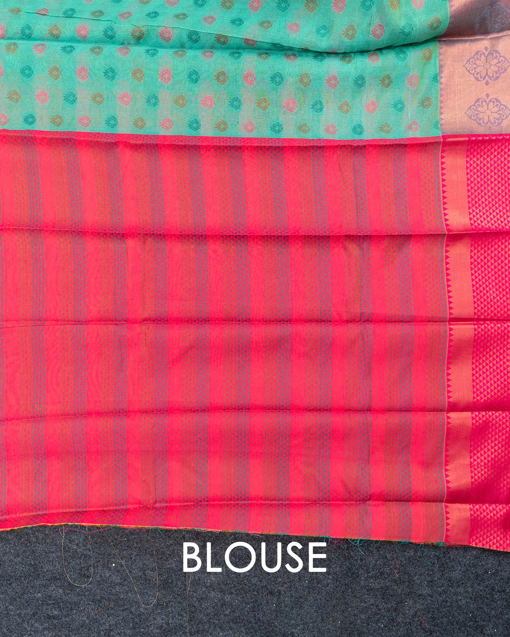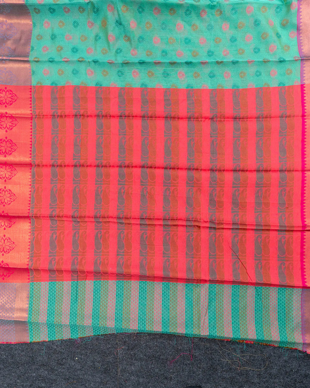 | Description | Beautiful mixed cotton saree with intricate meena butta detailing, offering a perfect blend of traditional and modern design for casual and semi-formal events. |