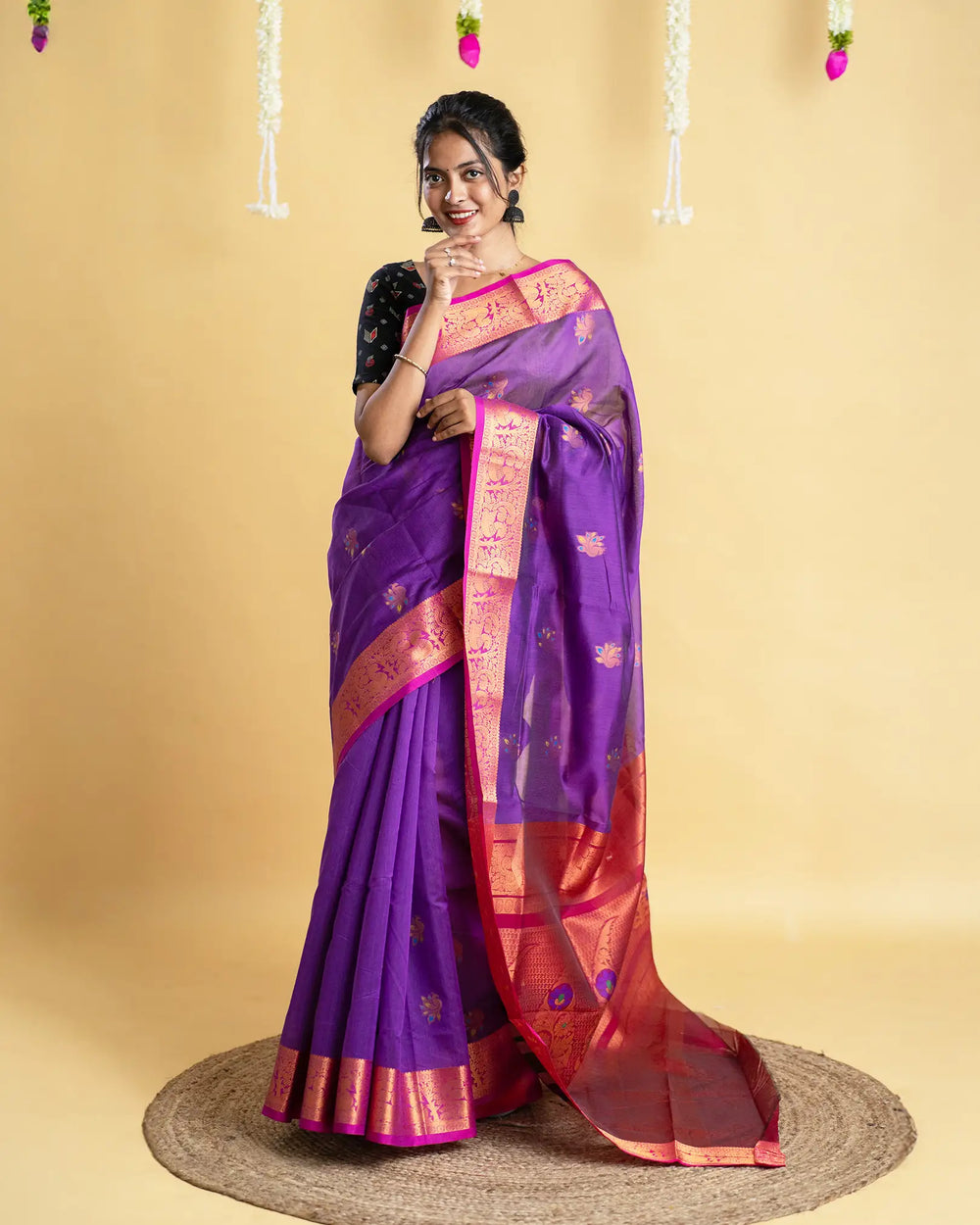 | Description | The Oodha Cotton Saree blends traditional charm with breathable comfort. Woven from premium cotton, it features a subtle texture and elegant drape, making it ideal for casual wear, office days, and cultural events. |