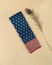 | Blouse | Running blouse with gold butta work, creating a perfect harmony with the saree’s copper zari and stone detailing, enhancing its elegant look. |