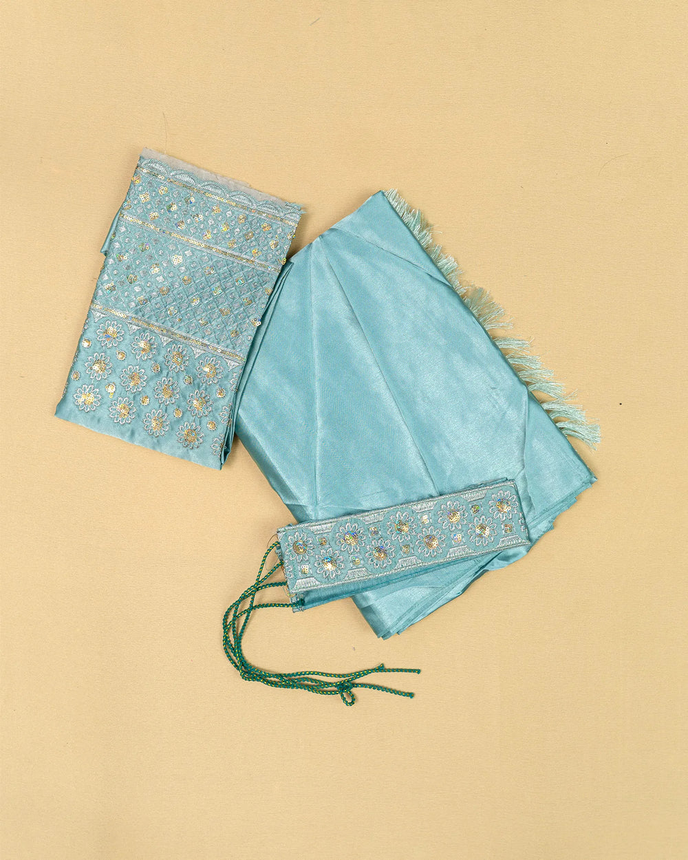 | Style | A perfect blend of tradition and modernity, featuring satin fabric, intricate blouse work, and a stylish belt that adds a contemporary twist to a classic look. |