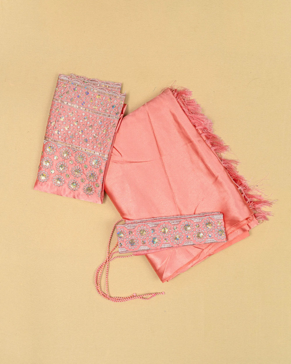 | Description | Elegant satin saree with intricate blouse work, enhanced by a stylish belt, offering a sophisticated and contemporary look perfect for weddings, formal events, and festive occasions. |