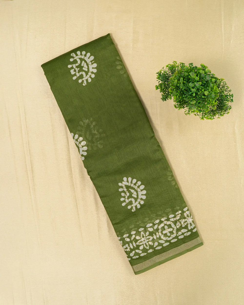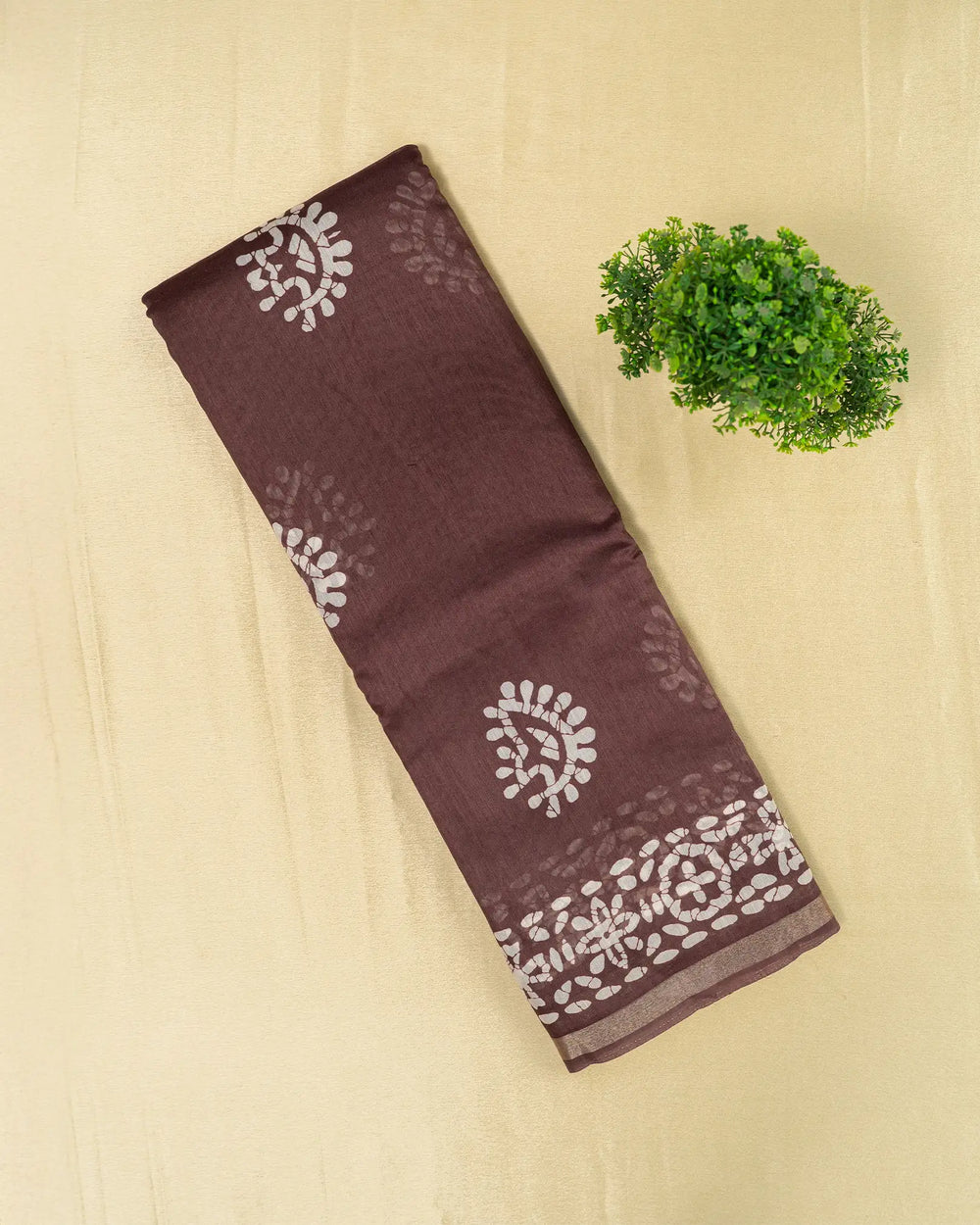 | Description | Elegant Tussar silk saree featuring traditional Bandhani print patterns across the body, combining heritage artistry with a soft, glossy silk texture. |