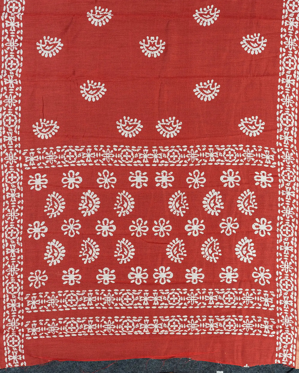 | Blouse | Running blouse with matching Bandani print, complementing the saree’s design for a unified and graceful traditional look. |