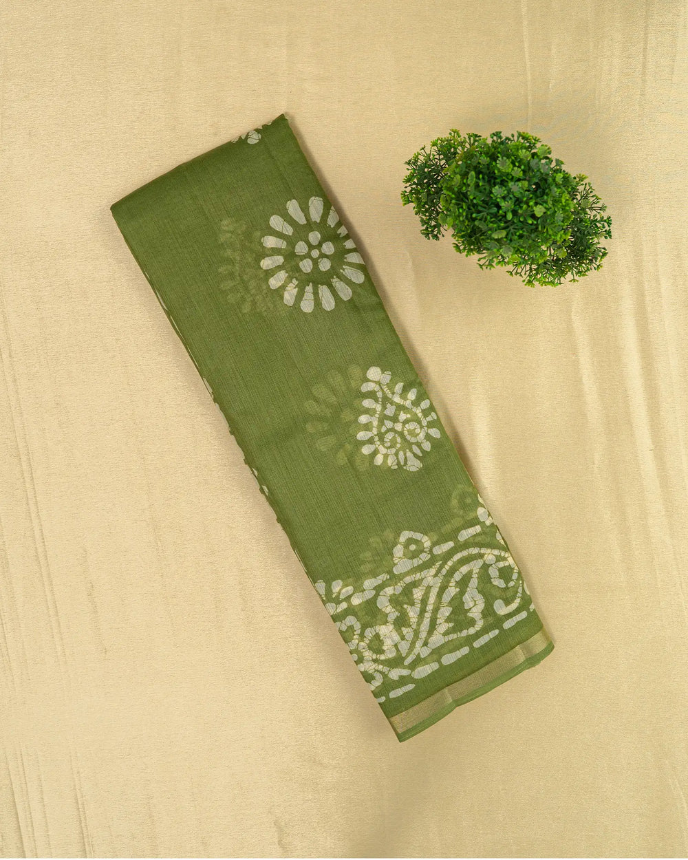 | Description | Elegant Tussar silk saree featuring traditional Bandhani print patterns across the body, combining heritage artistry with a soft, glossy silk texture. |