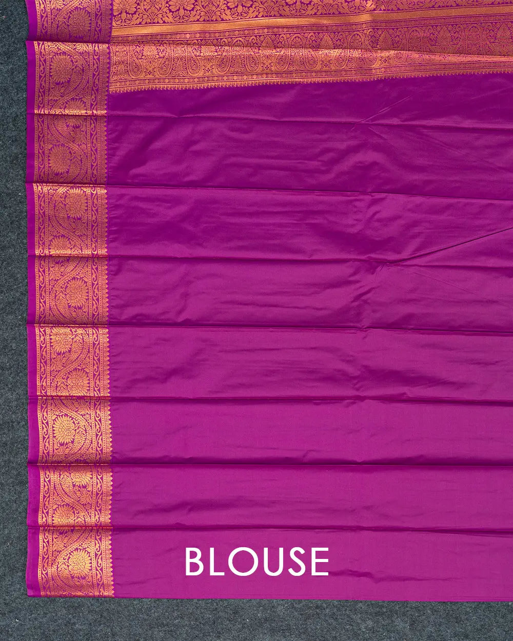 | Blouse | Running contrast blouse that enhances the saree’s zari detailing, offering a balanced and graceful look for any event. |