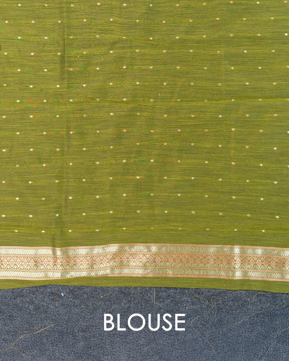 | Description | Elegant linen saree adorned with copper and silver butta work, highlighted with delicate stone accents for a refined festive appeal. |