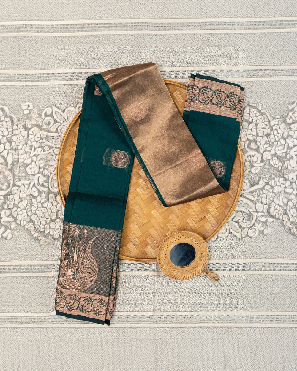 | Description | A classic cotton saree showcasing a graceful minimal weave and clean borders for an everyday-elegant look. Perfect for festive events, traditional gatherings, and casual celebrations. |