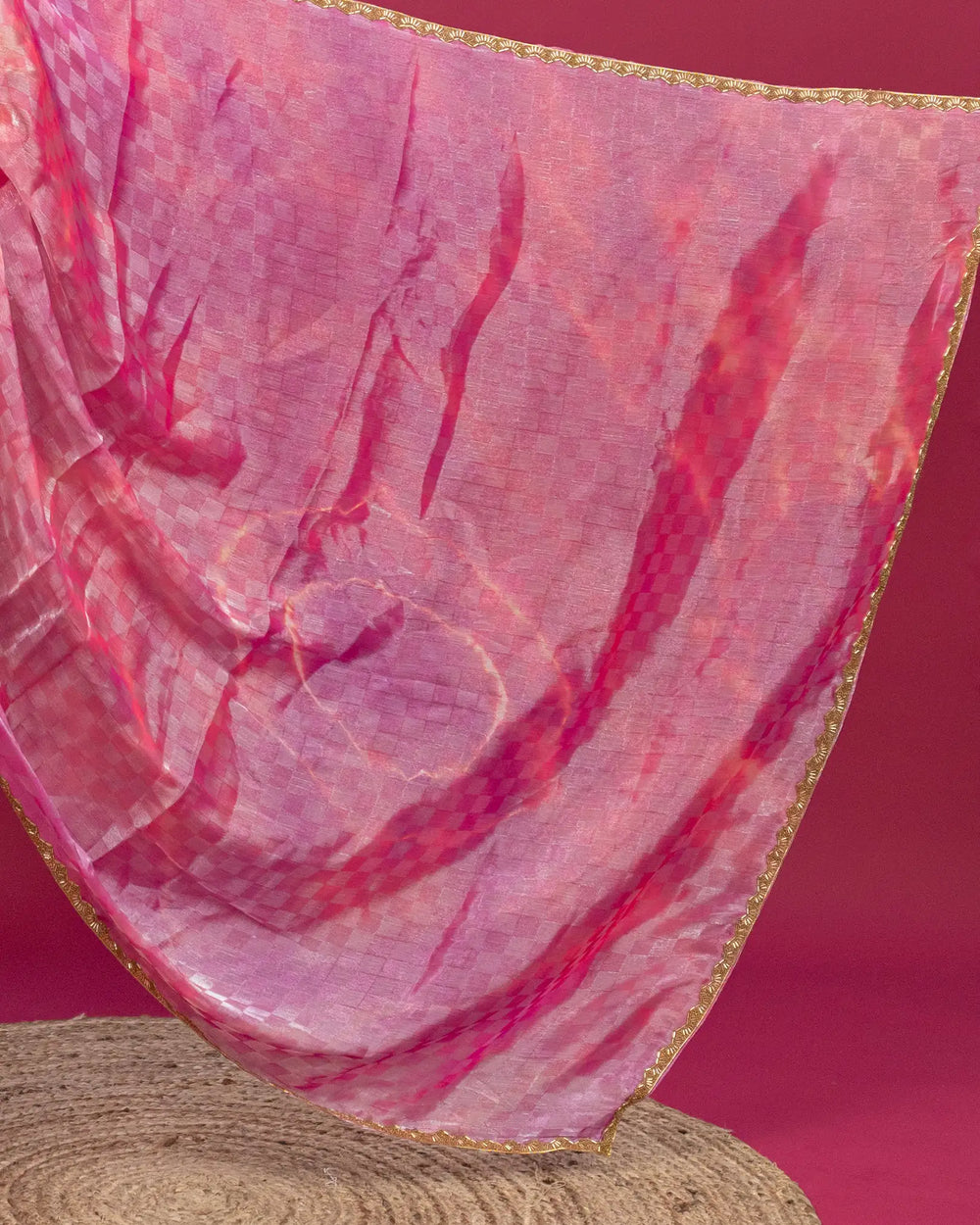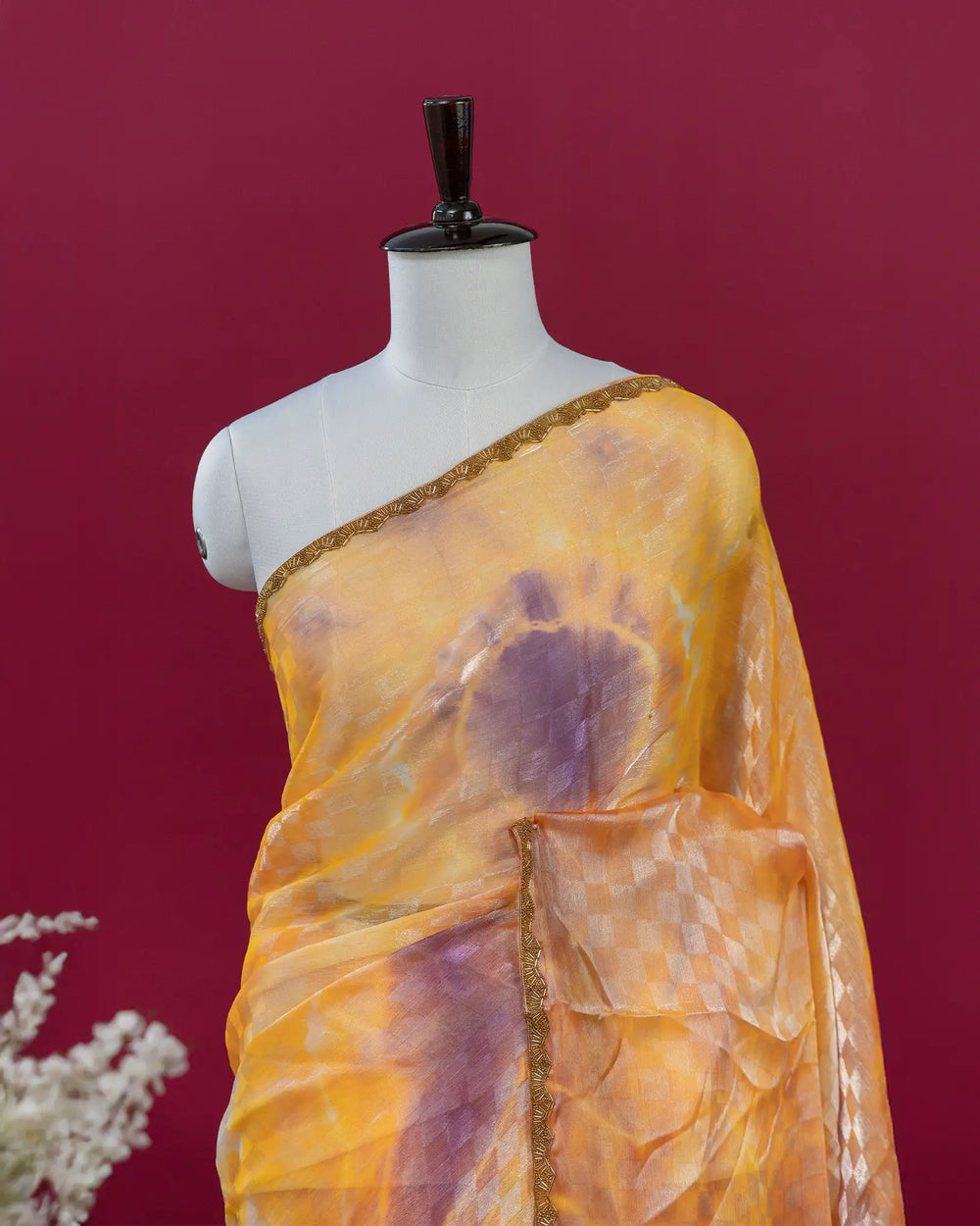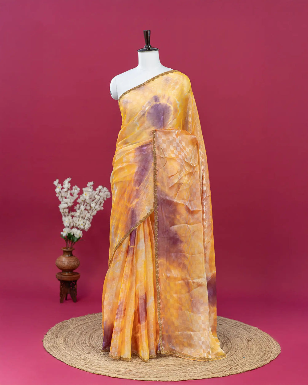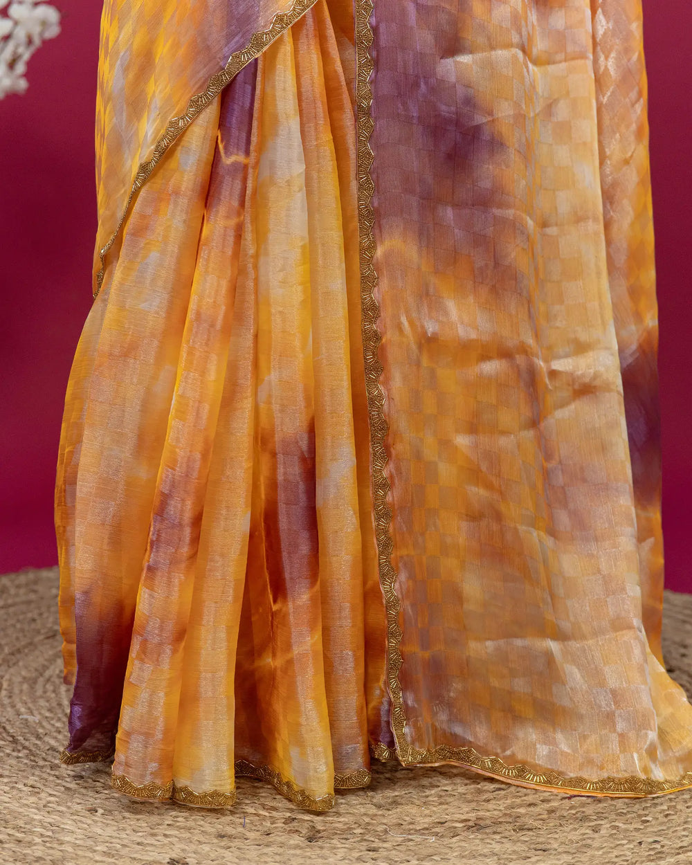 | Style | Elegant fendy embose saree highlighted with intricate Jarjoshi work for a rich, festive look. |