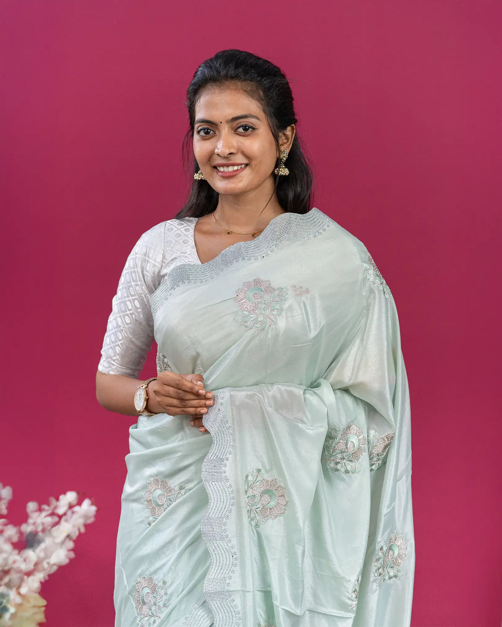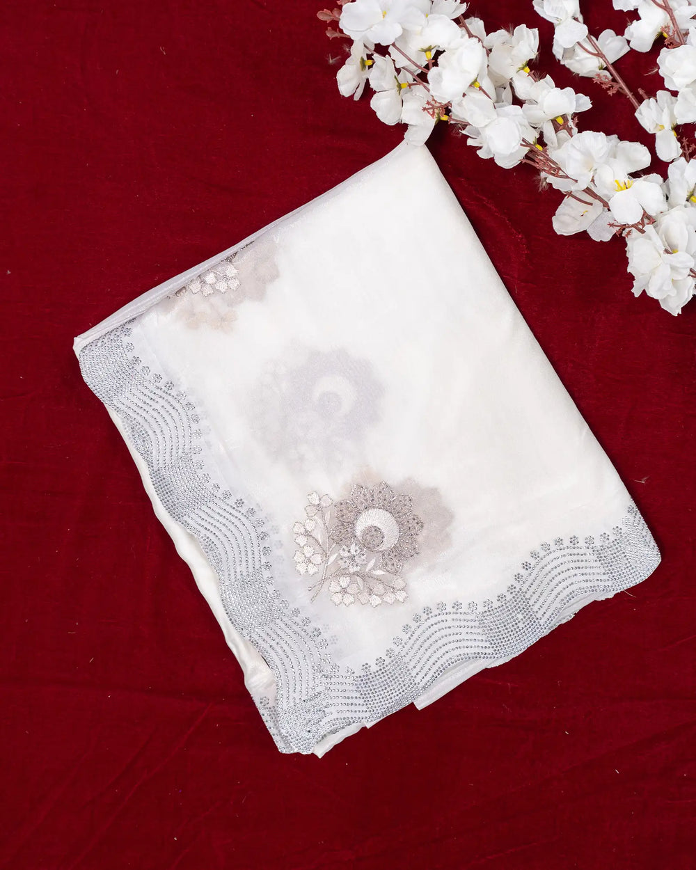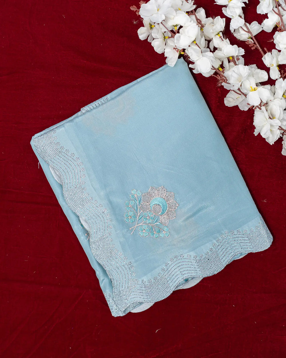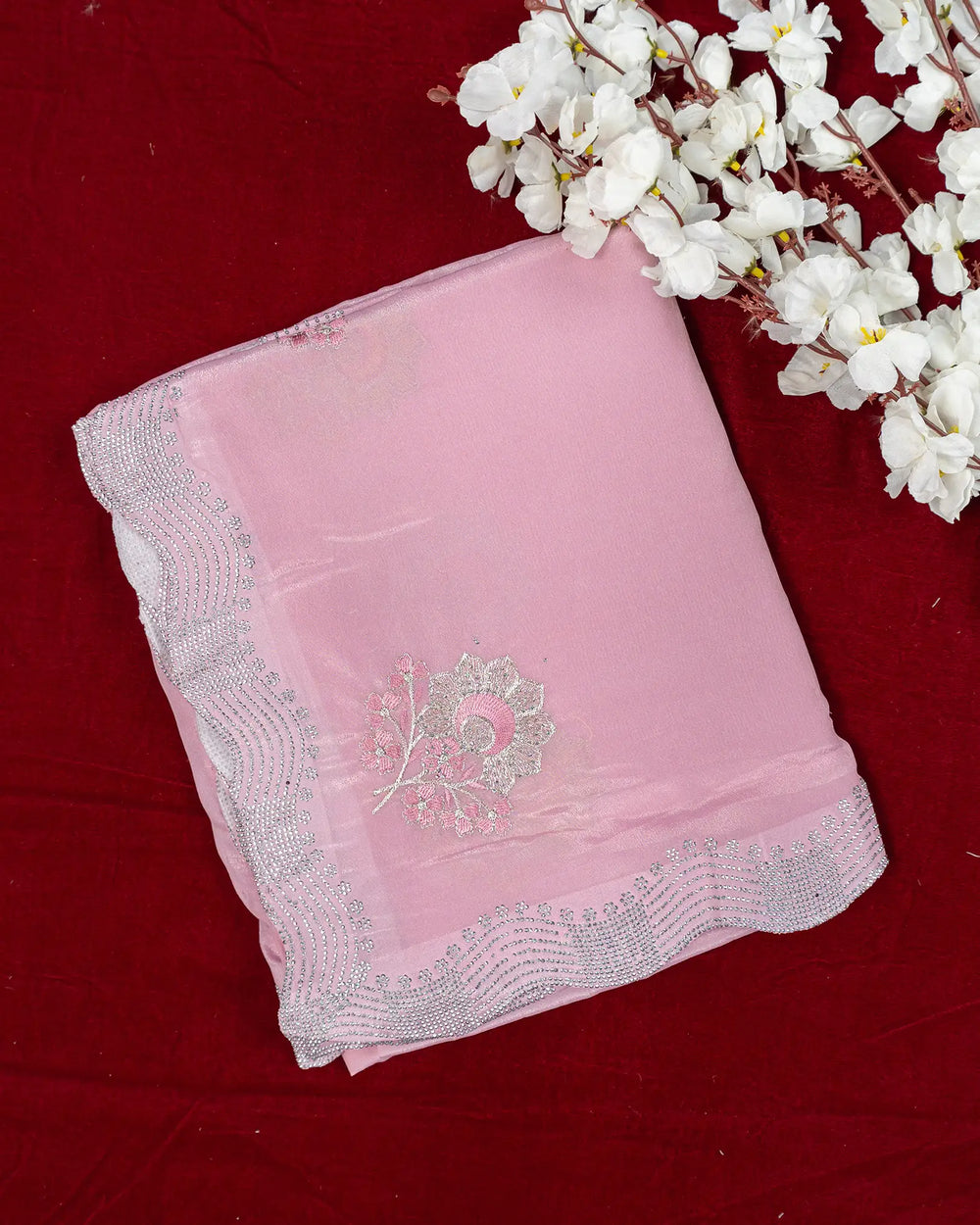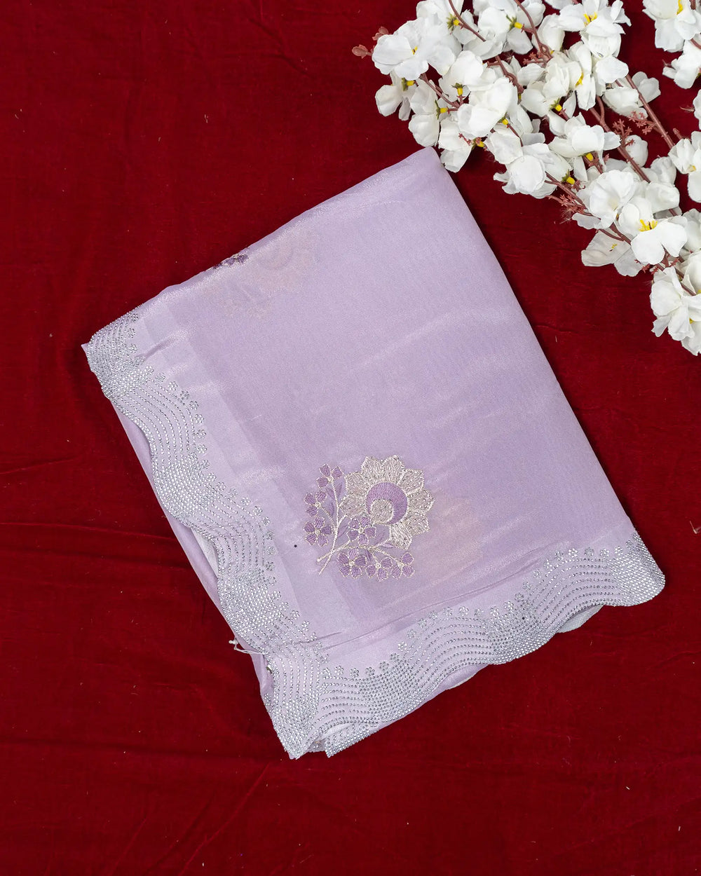 | Description | A luxurious crepe saree adorned with exquisite fancy stone embellishments, offering a soft drape and glamorous shine. Perfect for weddings, festive occasions, and grand evening celebrations. |