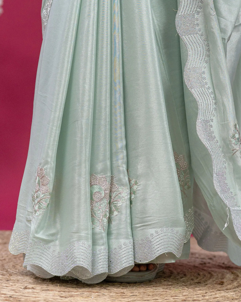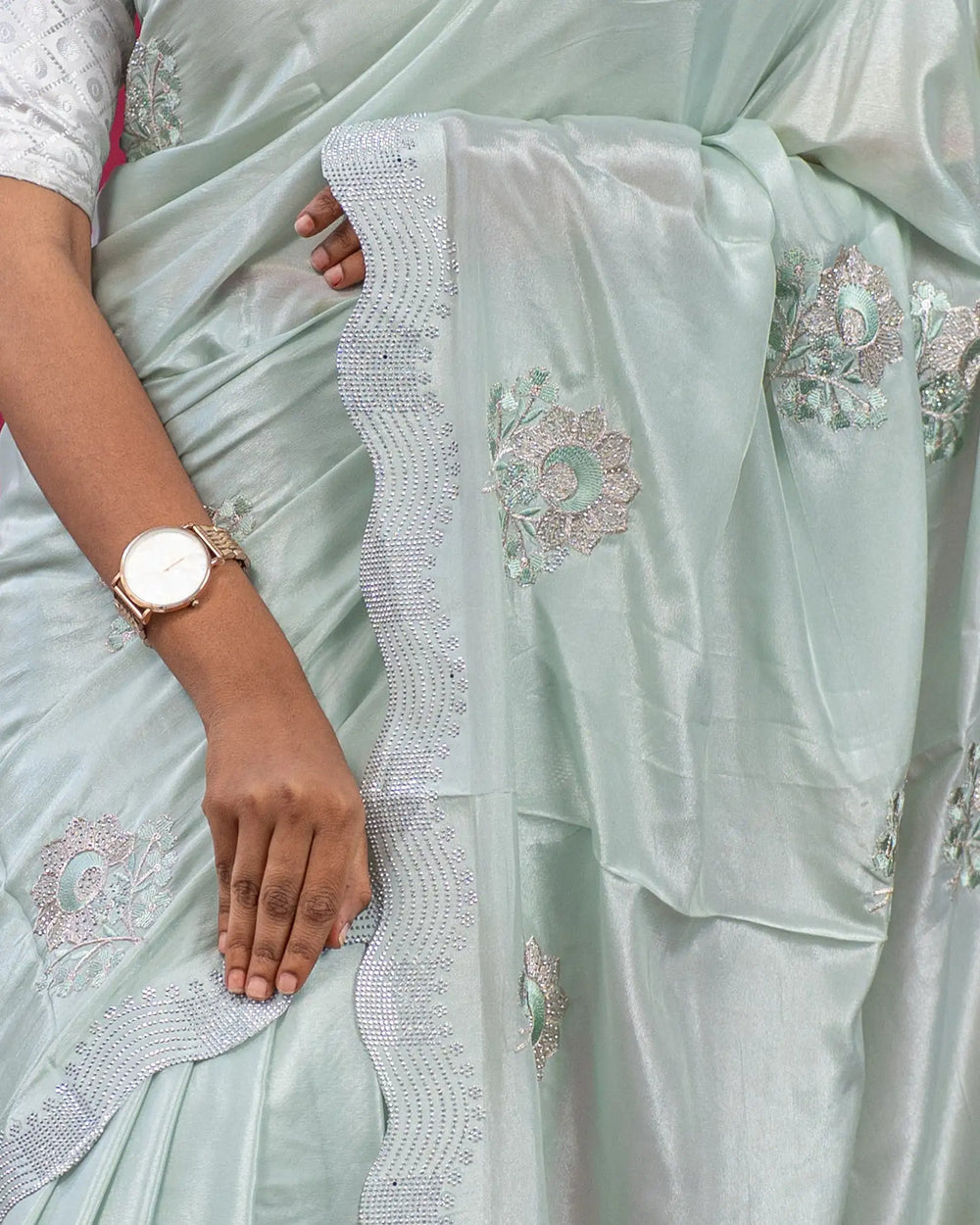 | Blouse | Running blouse with elegant stone work to perfectly complement the saree’s fancy stone detailing. |