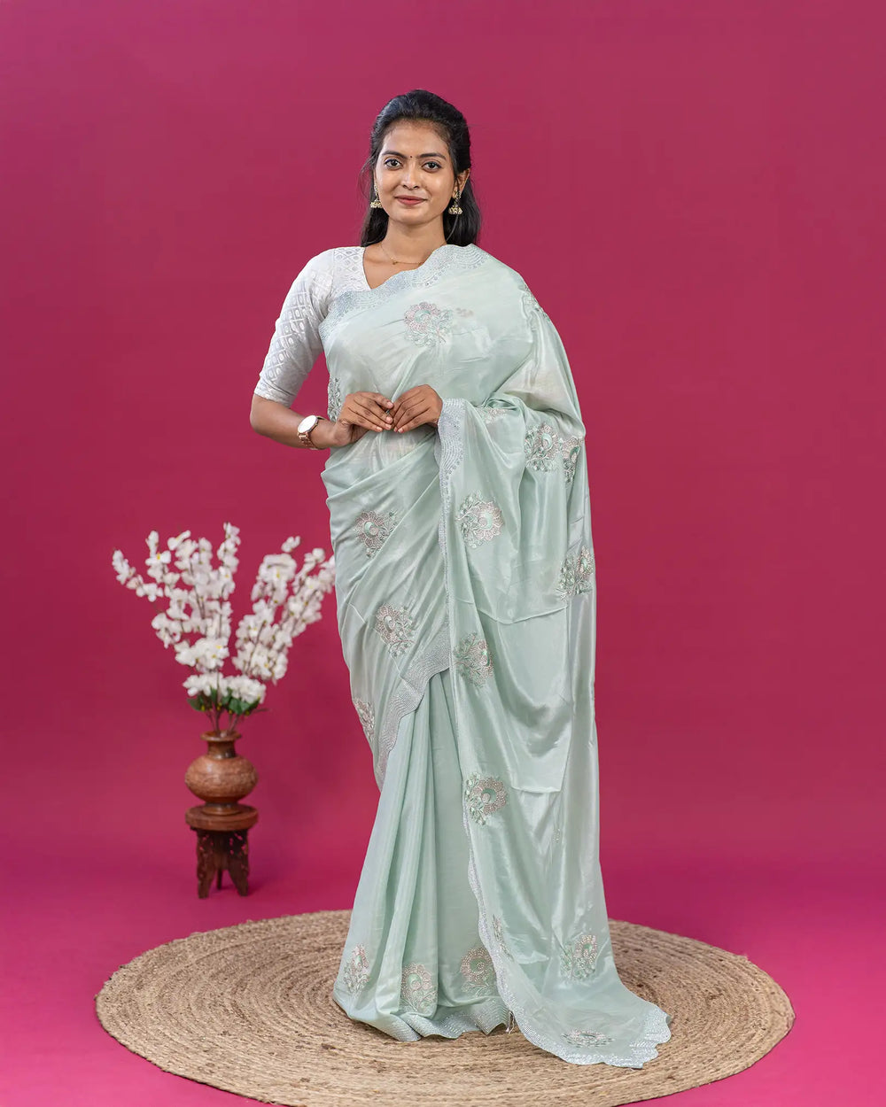 | Style | Contemporary crepe saree with luxurious fancy stone embellishments for an elegant, festive look. |