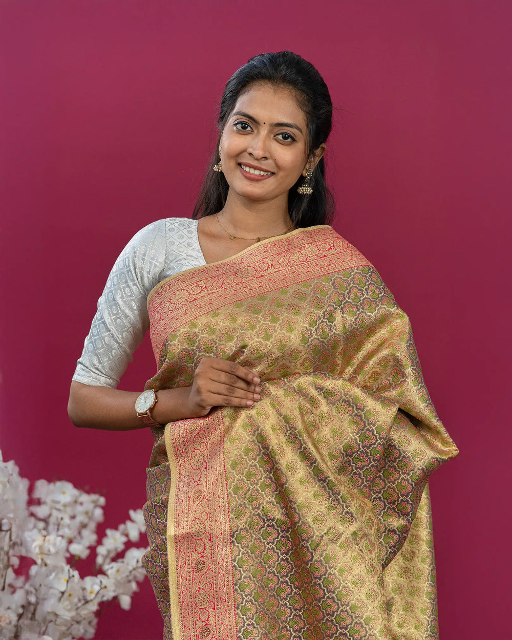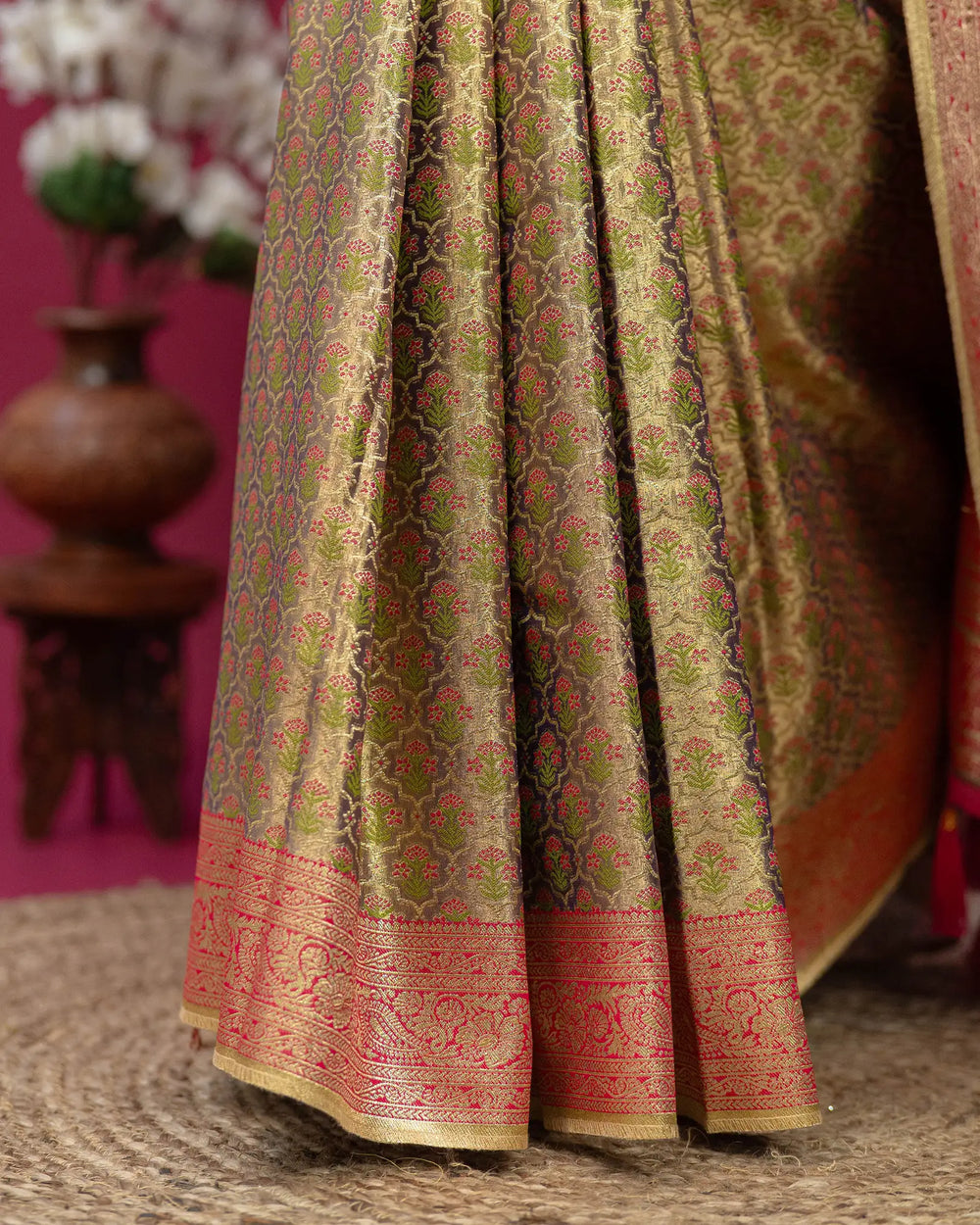 | Wash Care | Dry clean only to maintain the delicate tissue texture and preserve the stone work. |