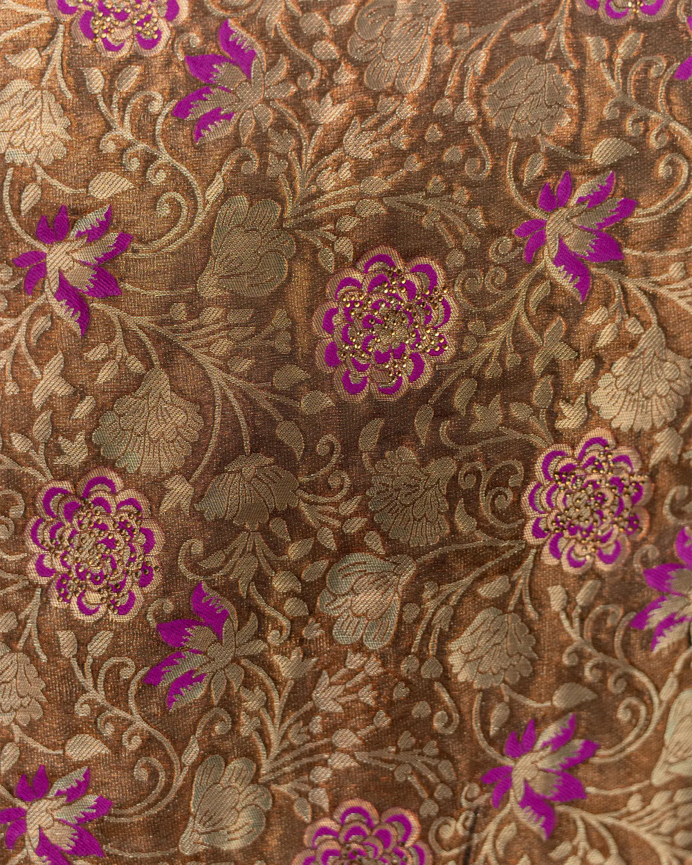 | Fabric | Fine silk blend with top-dyed finish and intricate meena butta weaving for a luxurious drape. |