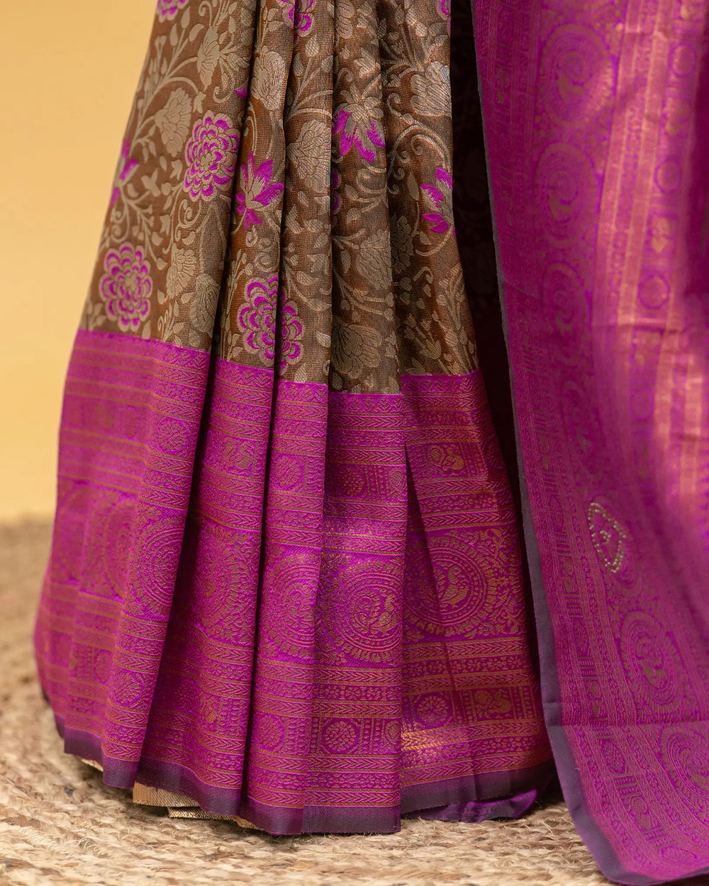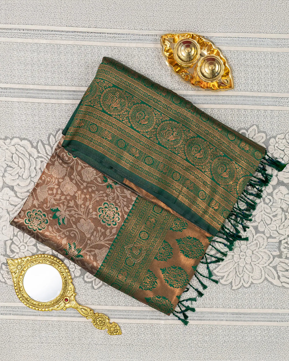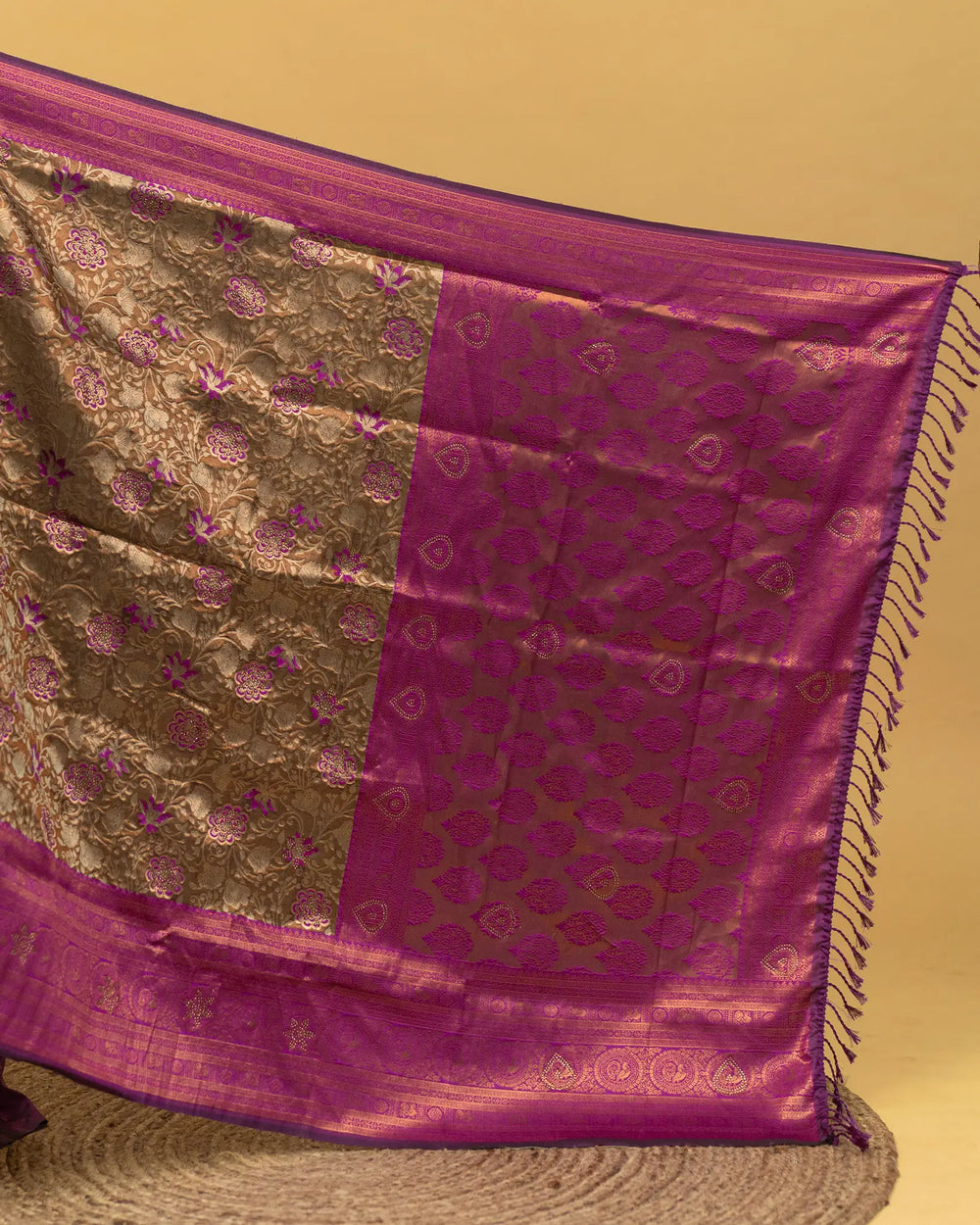 | Description | A premium Dharmavaram Pattu saree beautifully woven with intricate meena butta motifs, offering a rich texture and graceful fall. Perfect for weddings, festive occasions, and traditional celebrations. |