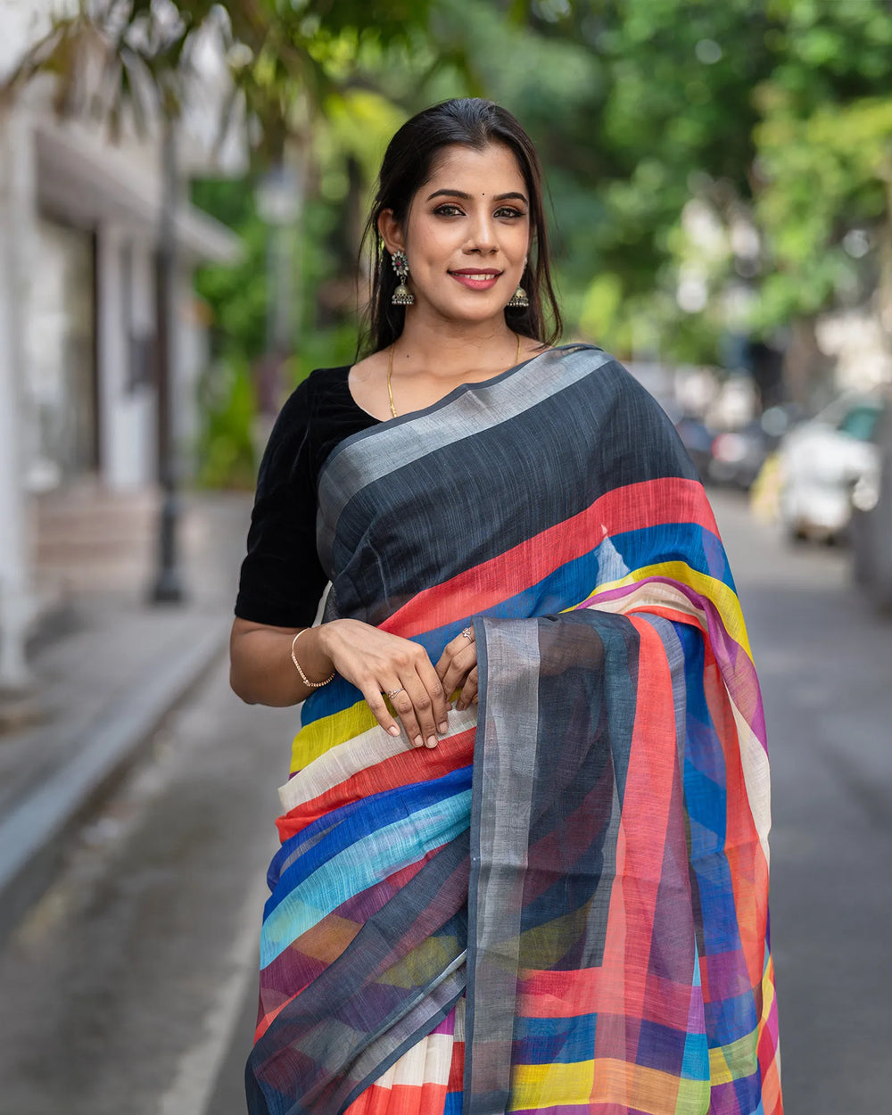 | Description | Stylish linen saree featuring elegant fancy lines, offering a modern and sophisticated look perfect for casual, semi-formal, and festive occasions. |