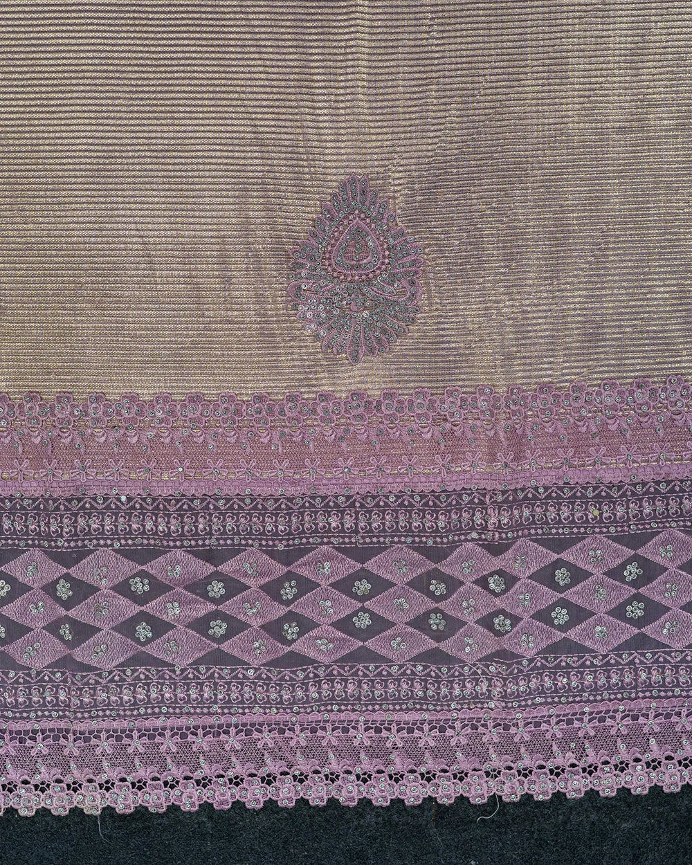 | Description | Elegant shimmer saree with a beautifully draped netted fleet design, adding a graceful and flowy silhouette perfect for festive and evening occasions. |
