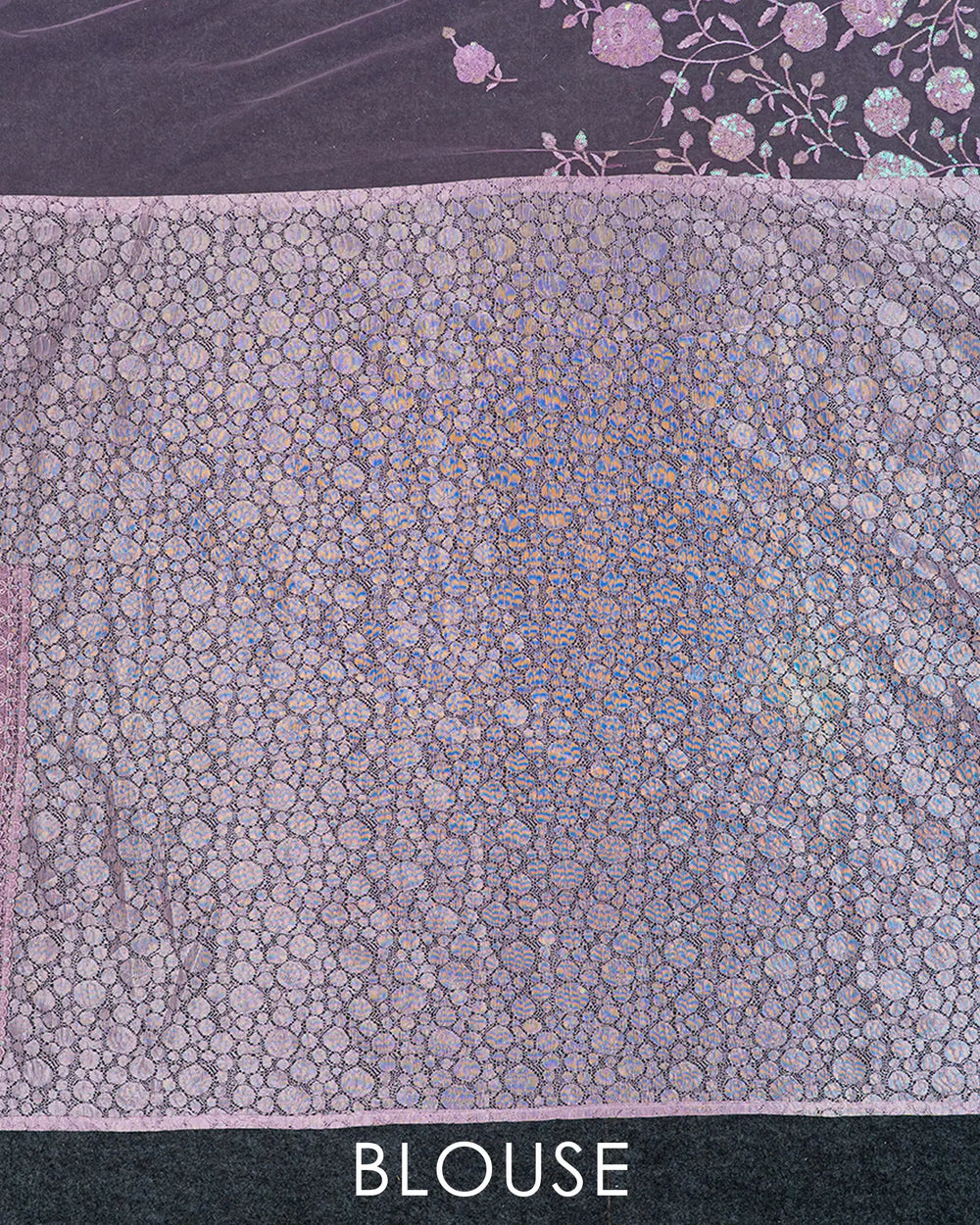 | Blouse | Matching running blouse crafted from shimmer fabric to complement the saree’s netted fleet texture, offering a cohesive and luxurious look. |