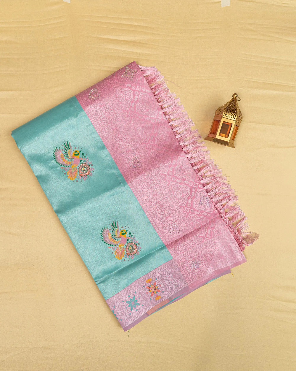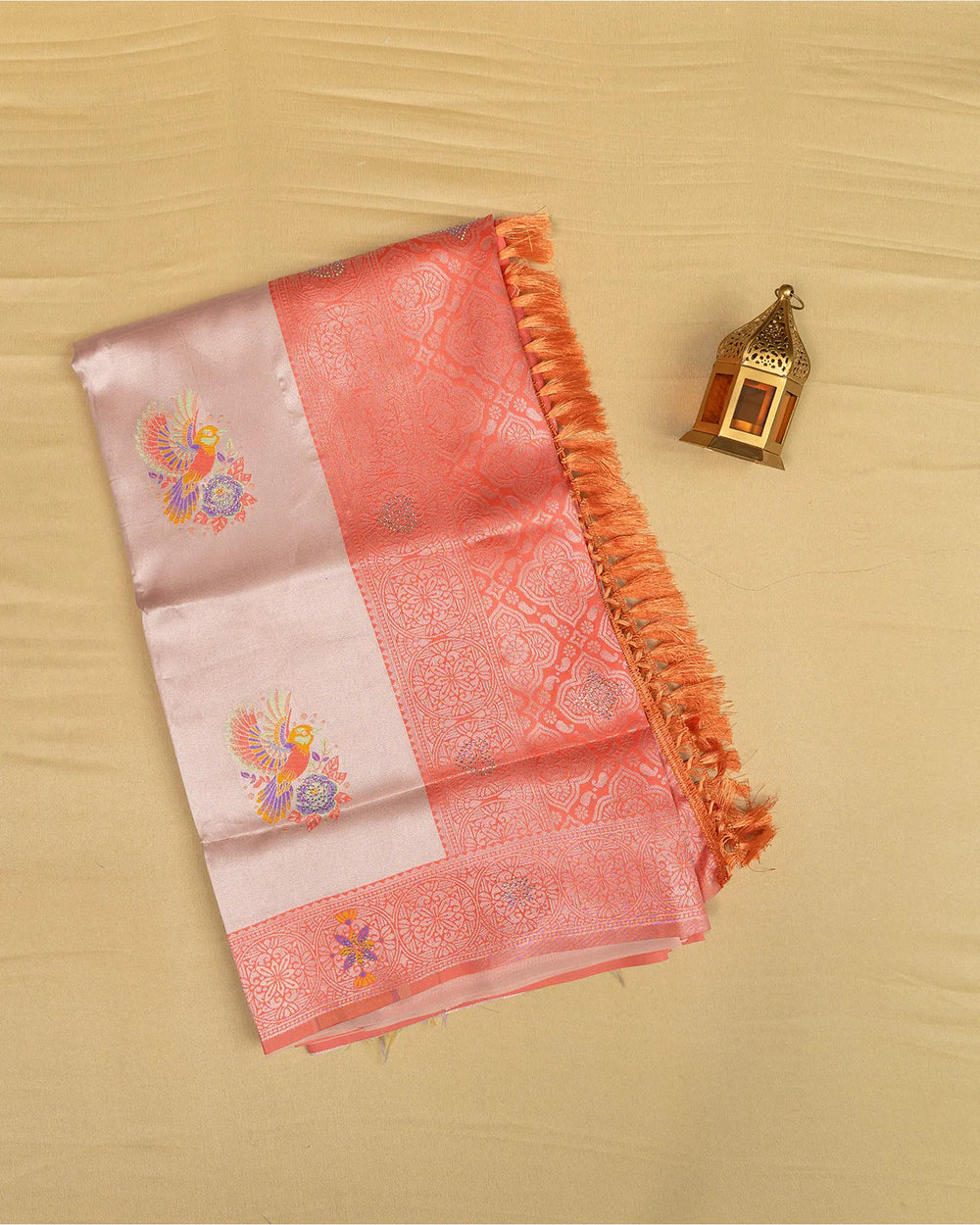 | Blouse | Matching tissue silver blouse complementing the saree’s shimmer and enhancing its overall sophistication. |