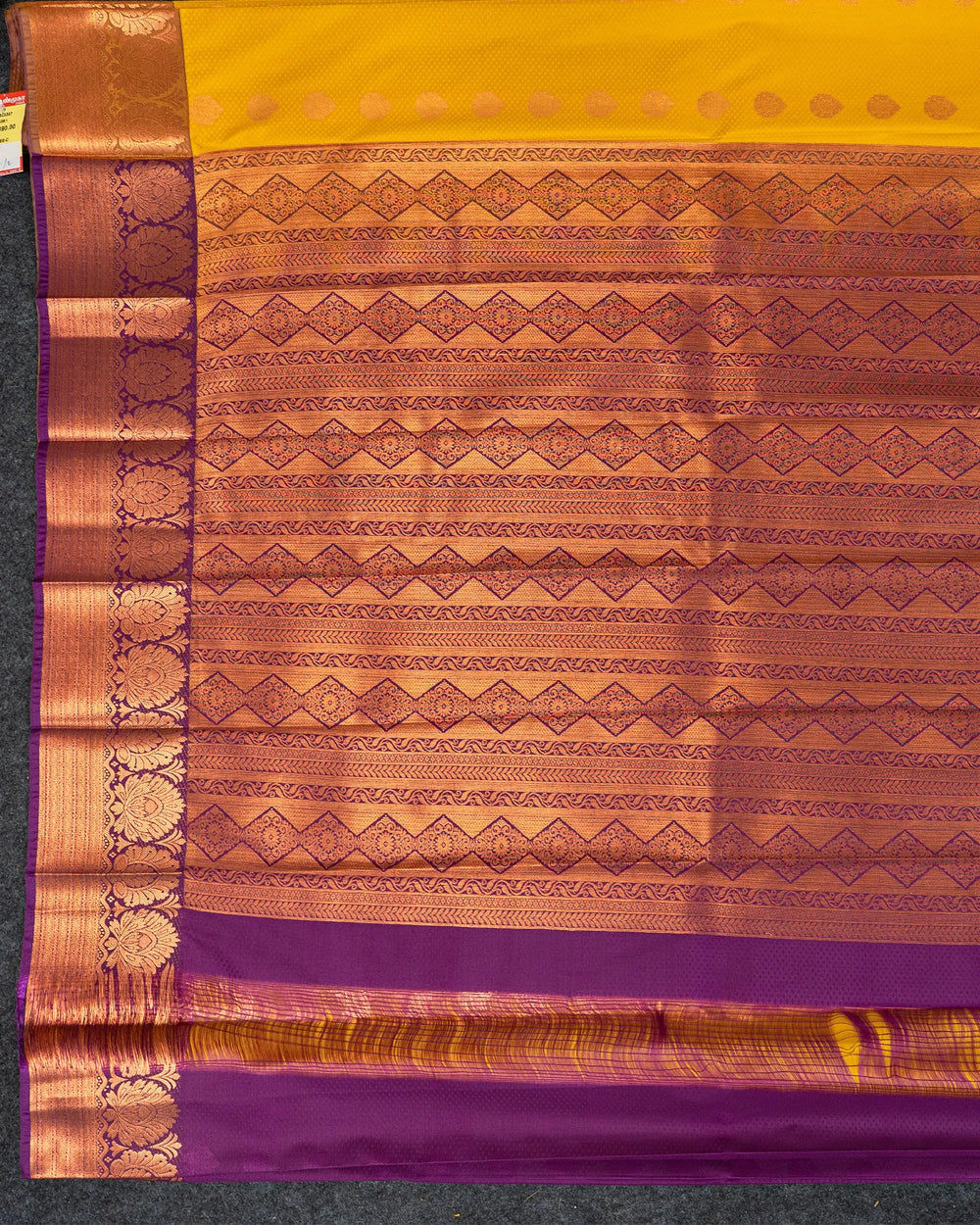 | Blouse | Embose Butta With Copper Zari blouse, designed to complement the silk saree with intricate copper zari embroidery for a luxurious and elegant look. |