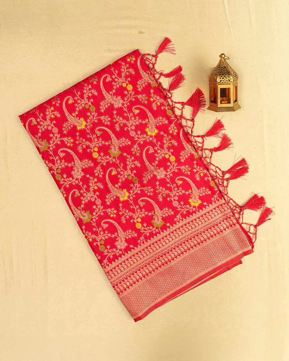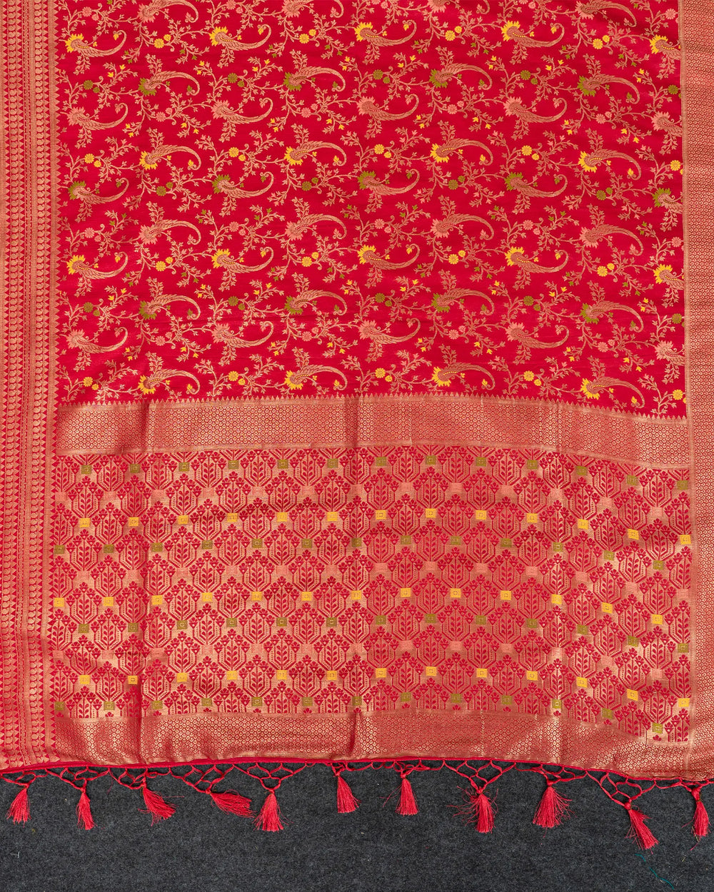 | Blouse | Running plain blouse that perfectly complements the rich Meena Butta design. |