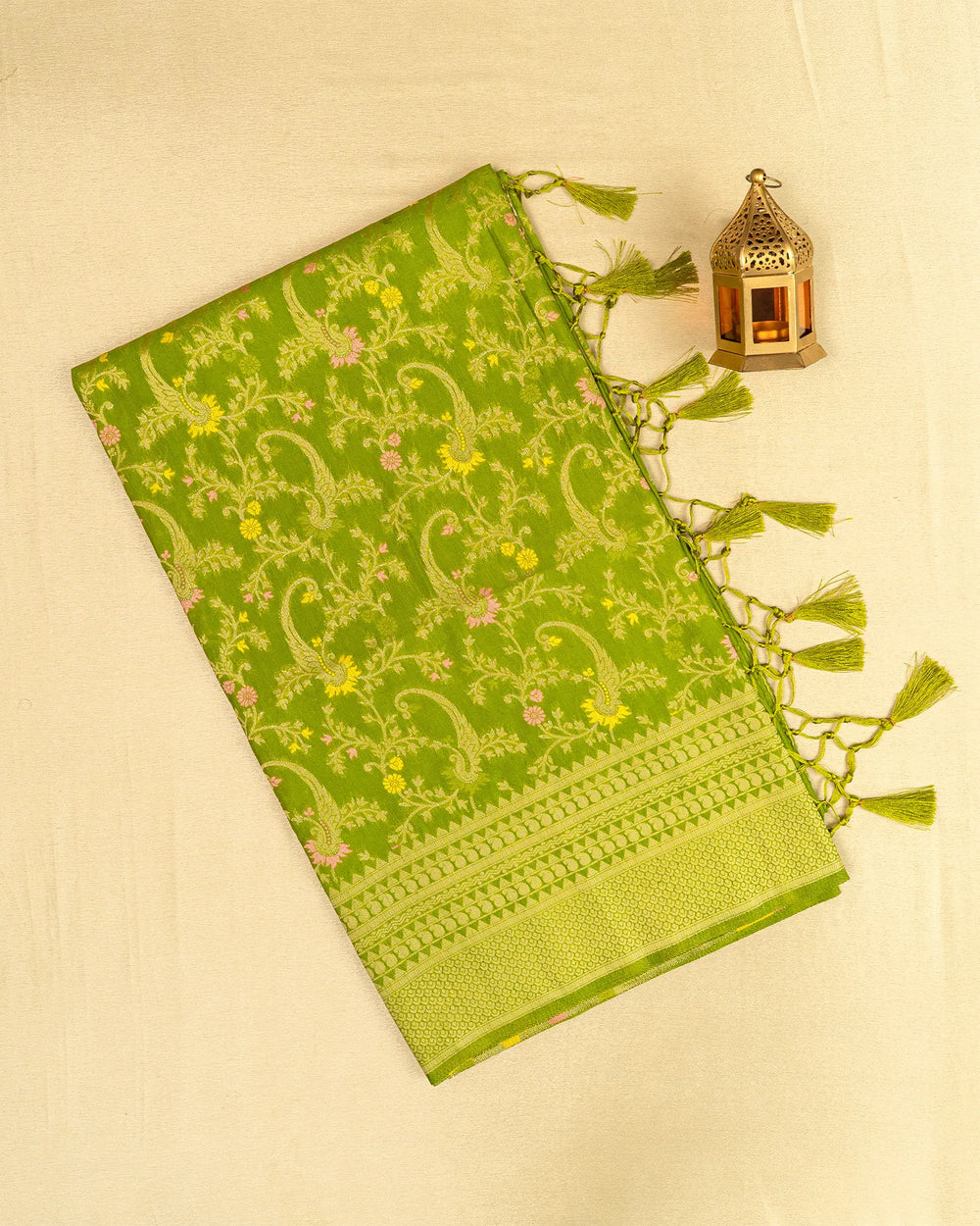| Wash Care | Dry clean recommended to maintain the silk sheen and Meena Butta work. |