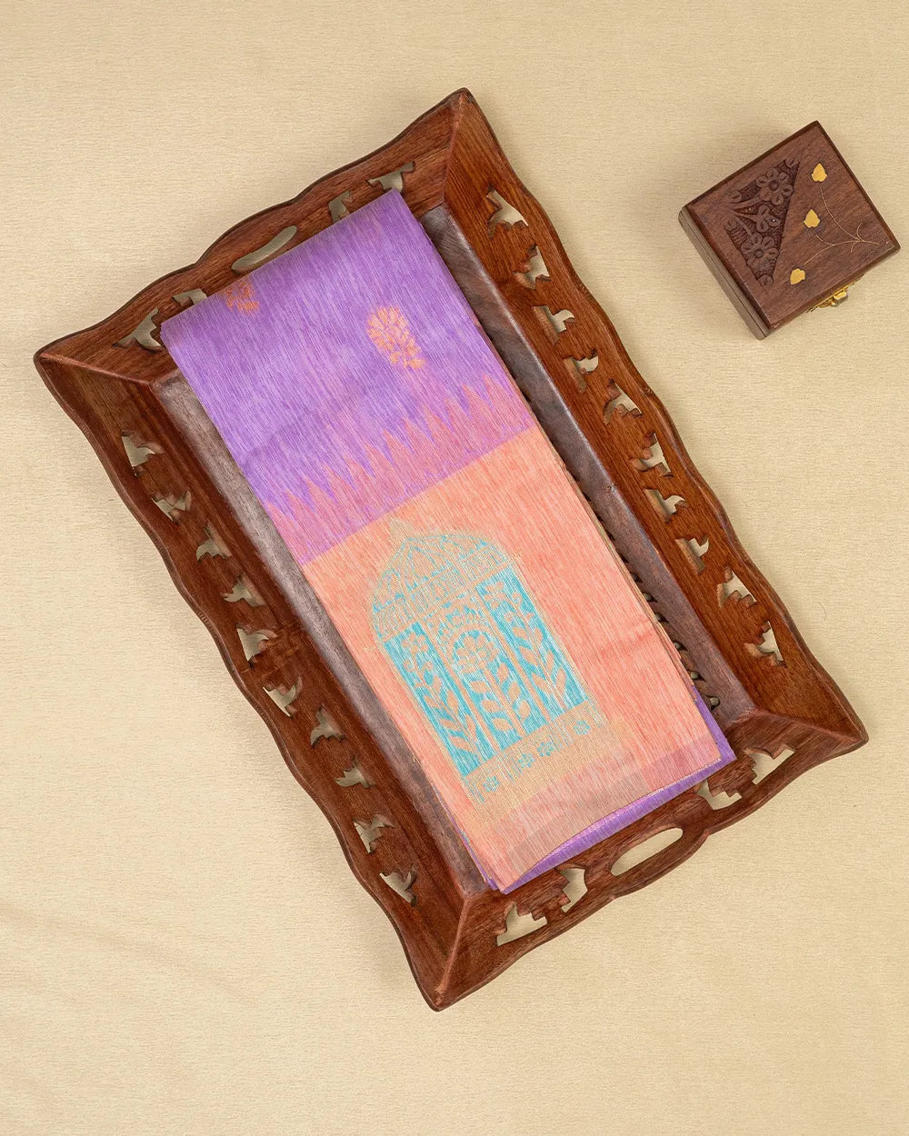 | Blouse | Contrast blouse with Zarki Butta work, designed to enhance the overall look with intricate zari detailing and a striking contrast appeal. |
