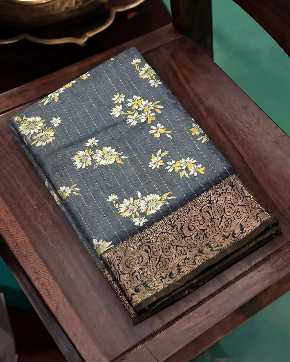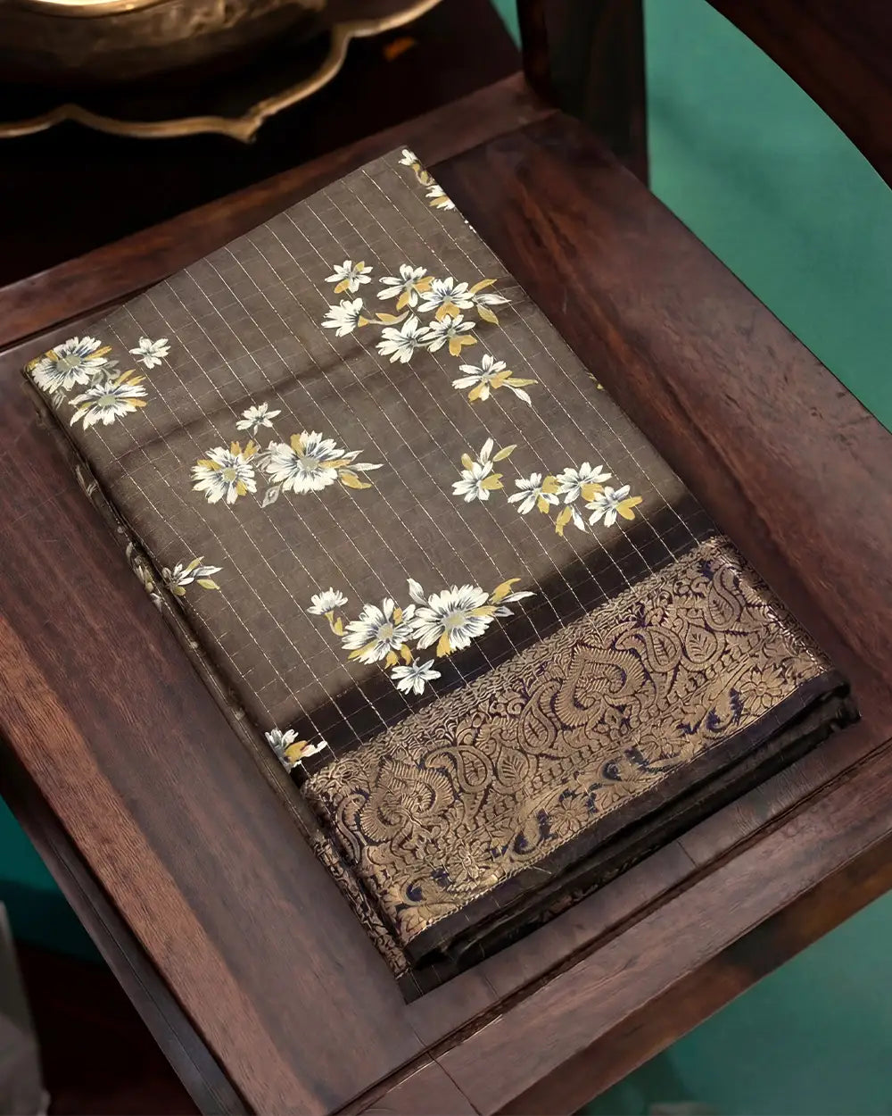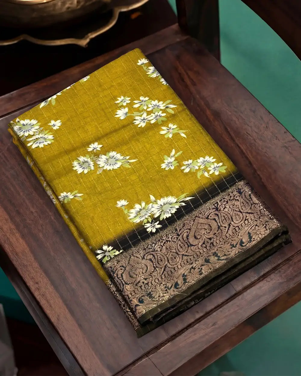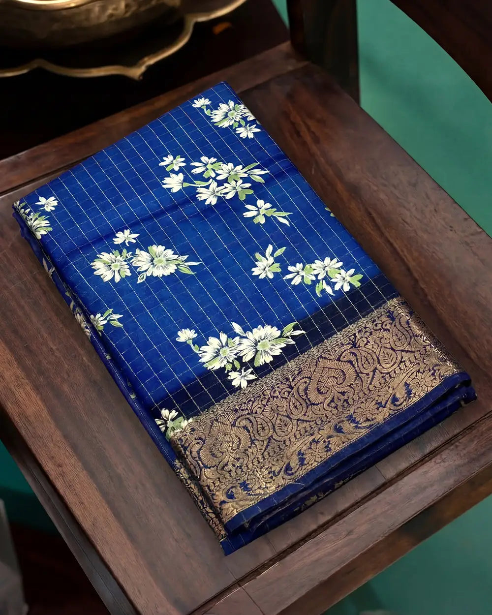 | Fabric | Premium dola fabric with zari checked weaving and digital print finish. |