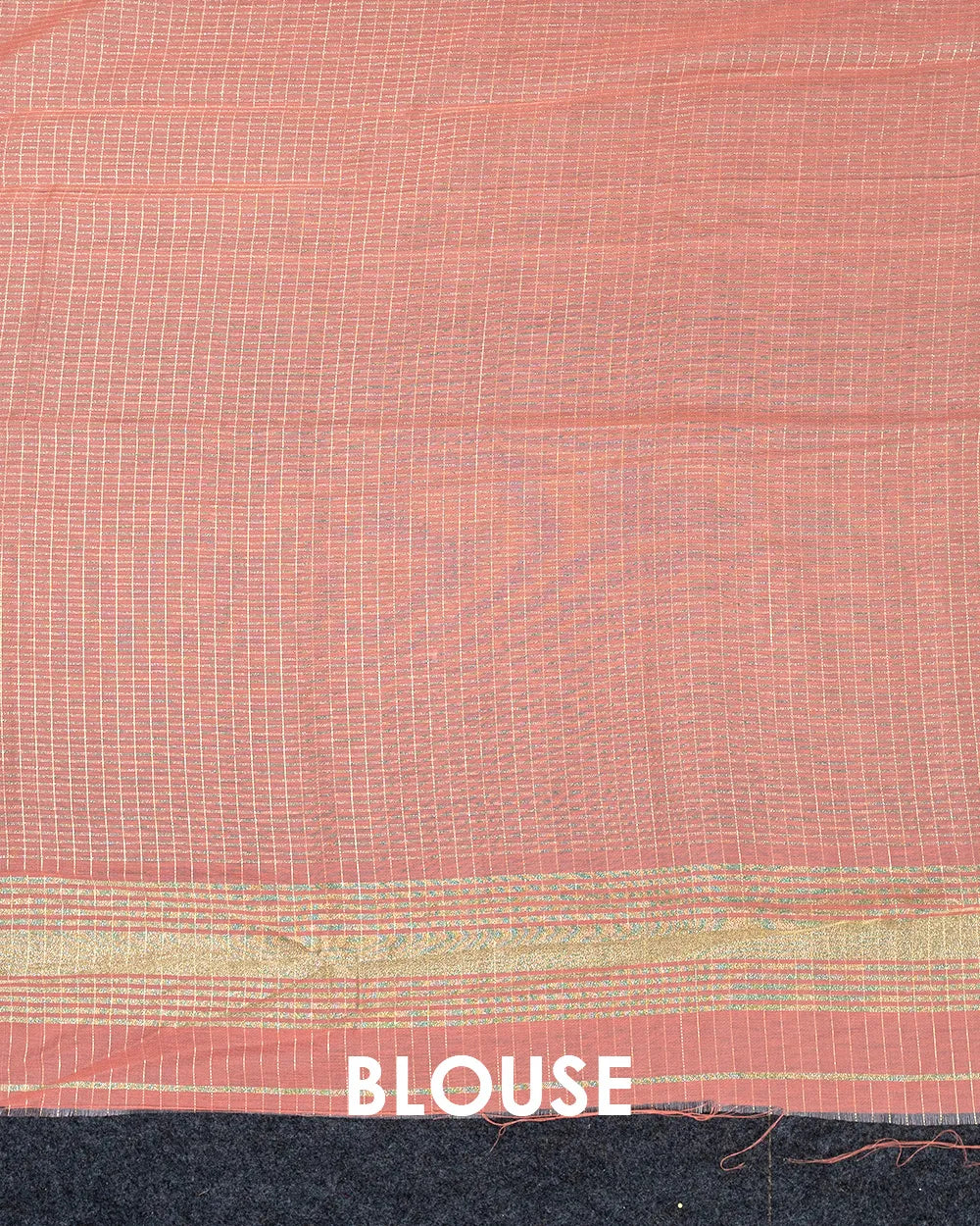 | Blouse | Gold Zari Checked blouse designed to beautifully complement the linen saree, adding a rich and graceful touch. |