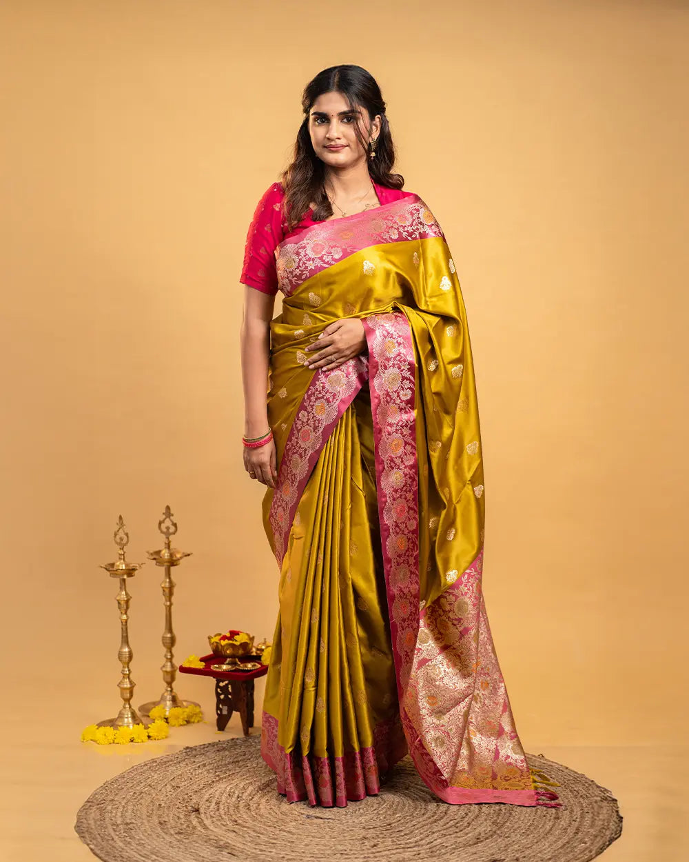 | Description | Premium satin saree with a rich glossy finish and smooth drape, perfect for elegant occasions and celebrations. |