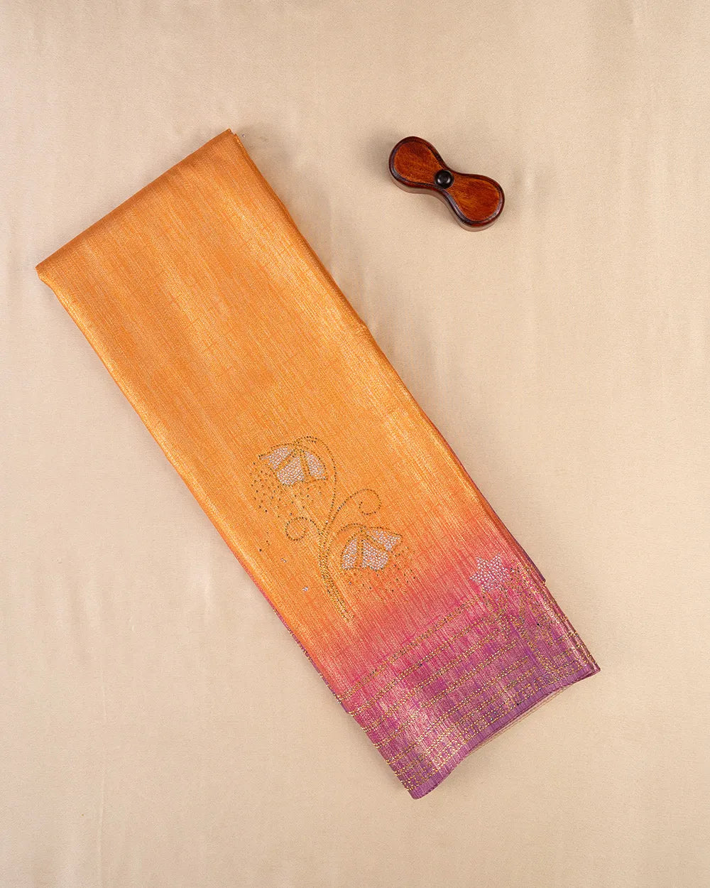 | Blouse | Contrast digital print blouse that beautifully enhances the saree’s stone embellishments and overall look. |