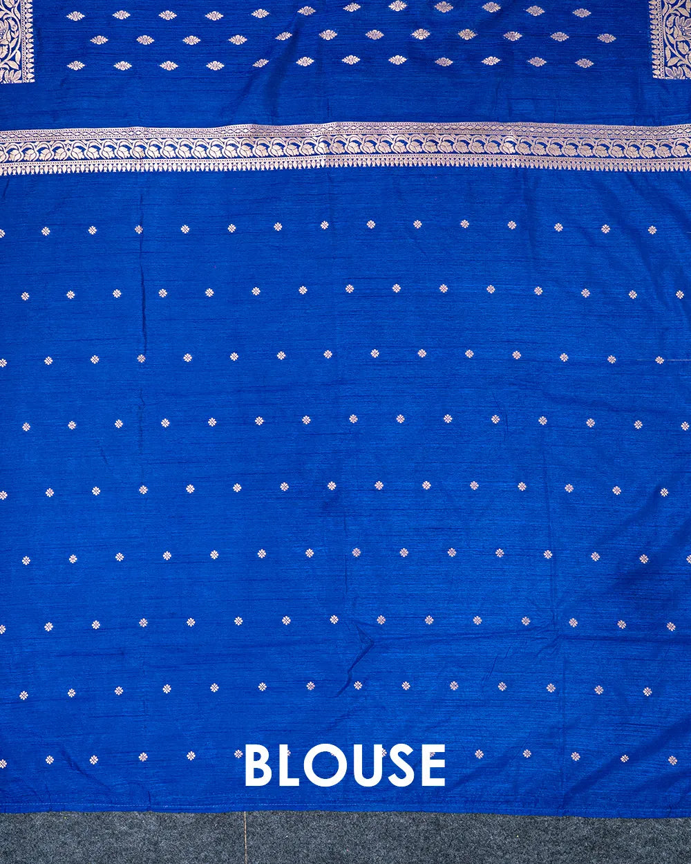 | Blouse | Running blouse featuring intricate zari butta work that perfectly matches the saree. |