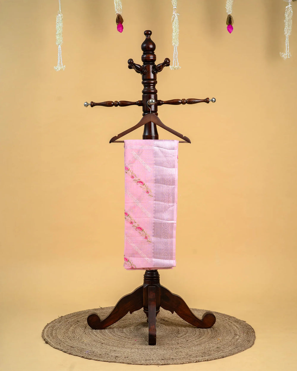 | Description | The Linen Embroidery Senthamarai Saree is a tribute to subtle luxury and traditional charm. Crafted in breathable linen and adorned with delicate Senthamarai (lotus) embroidery, it offers both elegance and comfort—perfect for graceful daywear, temple visits, and cultural celebrations. |