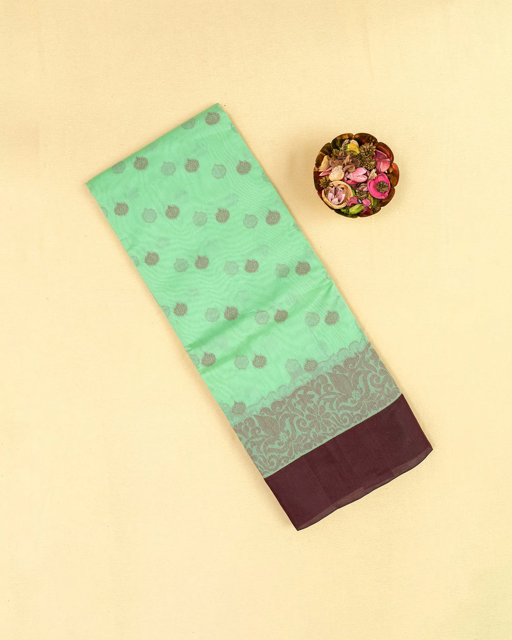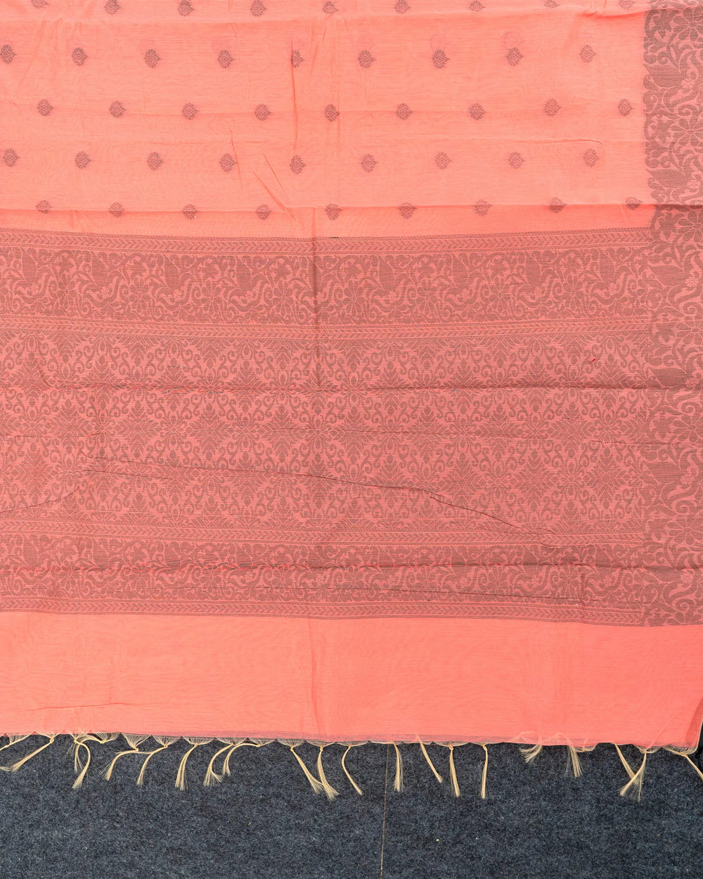 | Blouse | Running plain blouse that complements the saree’s thread butta and fancy border, providing a clean and elegant look. |