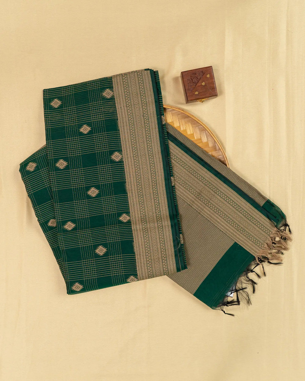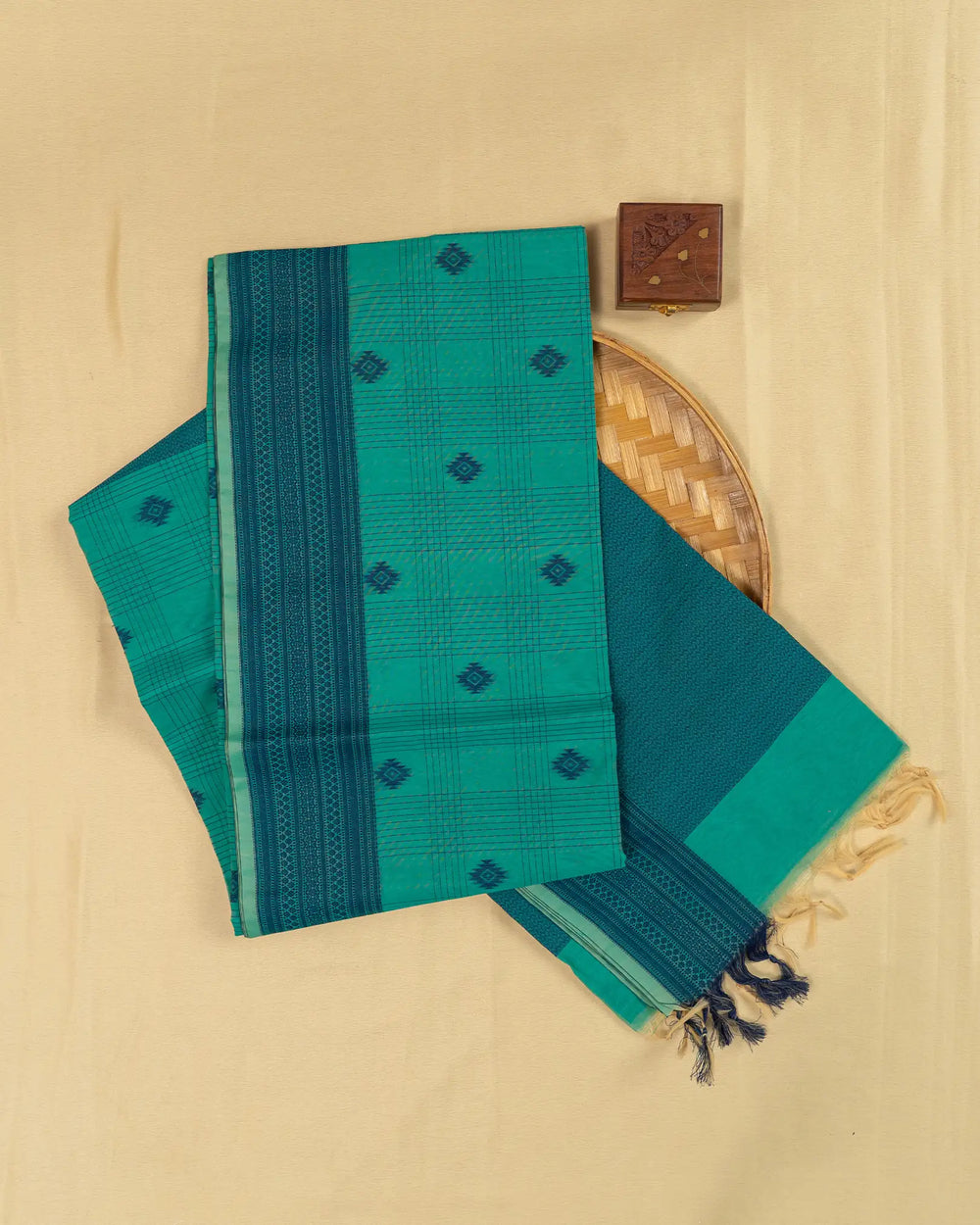 | Description | Elegant silk cotton saree with delicate thread work, perfect for casual and festive occasions. |