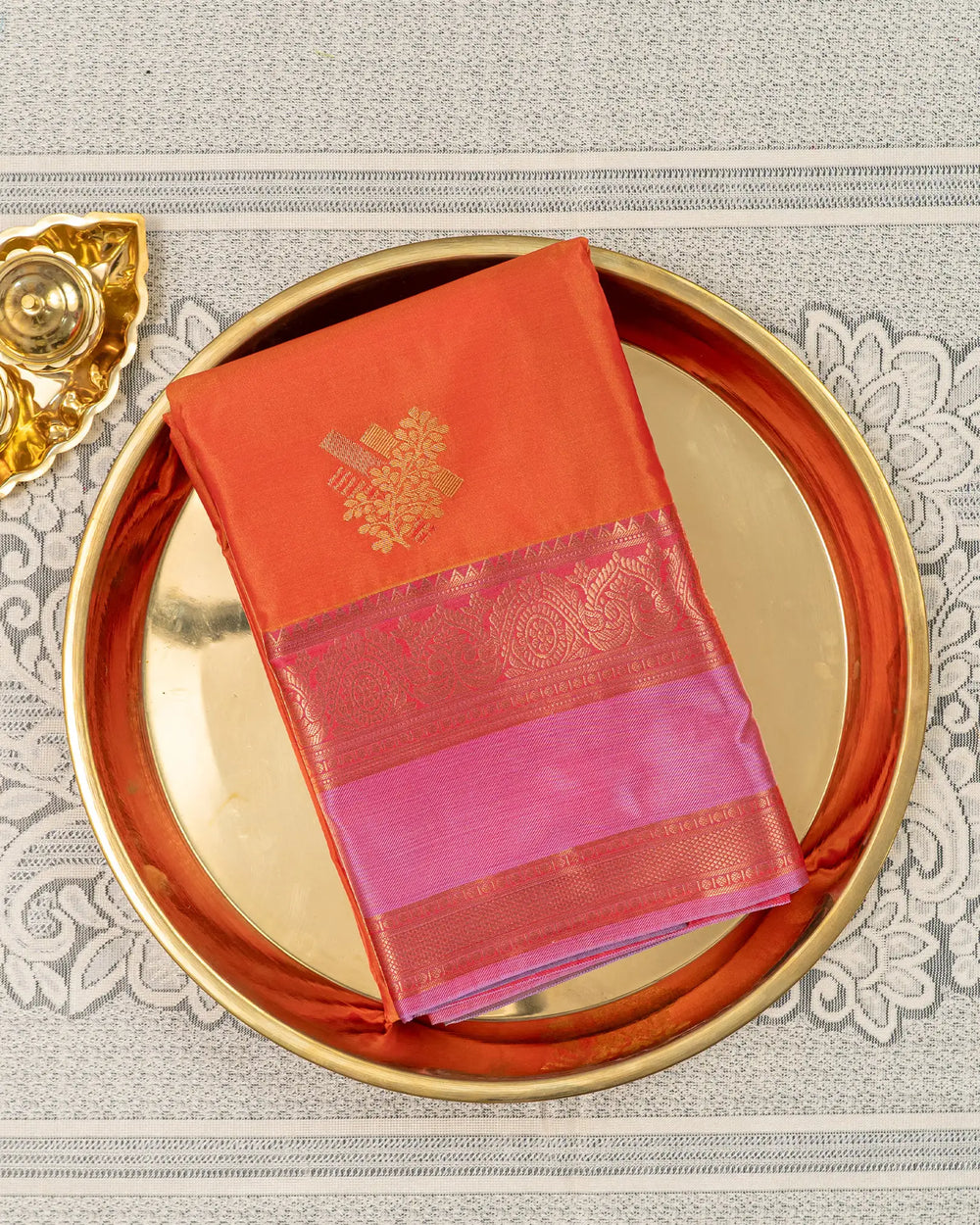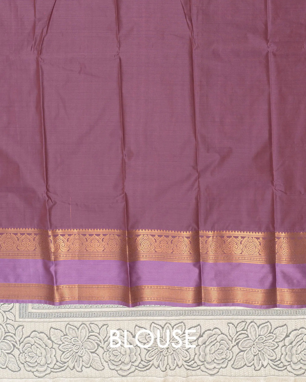 | Description | Elegant silk saree adorned with subtle copper zari, perfect for festive and traditional occasions. |