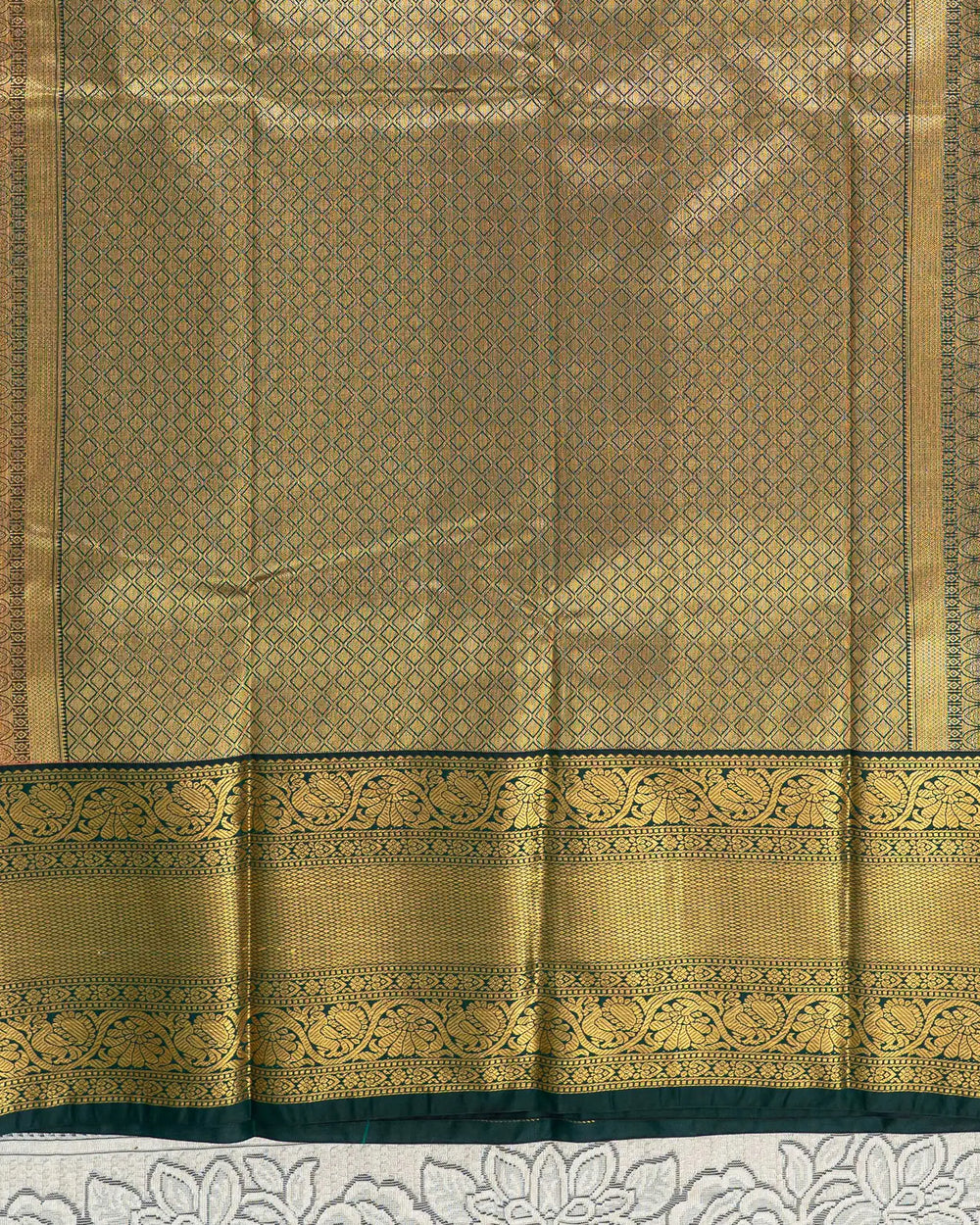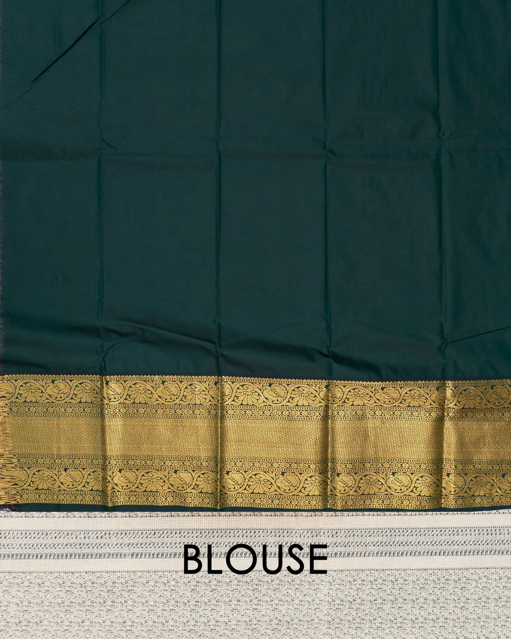 | Style | Plain blouse with big zari border enhancing the rich silk saree |