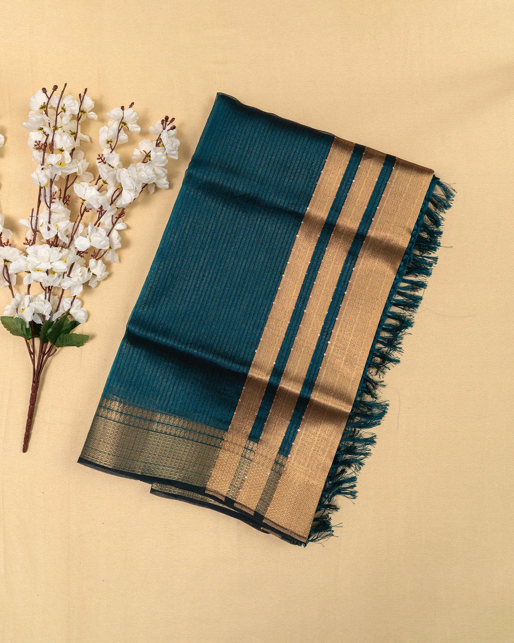 | Style | The plain tissue base paired with sparkling pallu sequins creates a modern yet traditional festive appeal |