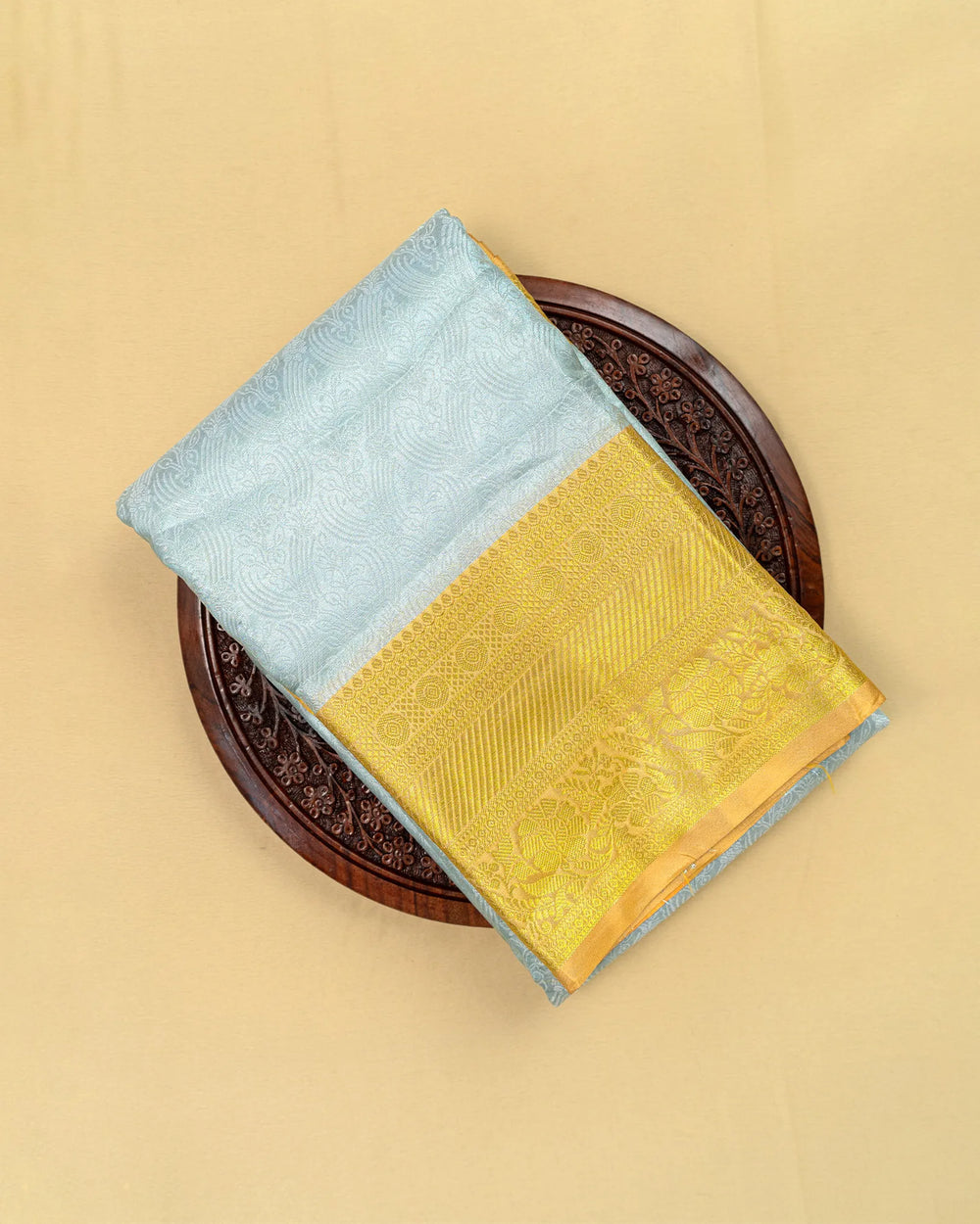 | Description | Elegant tissue saree featuring delicate embose flower design across the body, highlighted with a luxurious gold border, perfect for festive occasions and celebrations. |