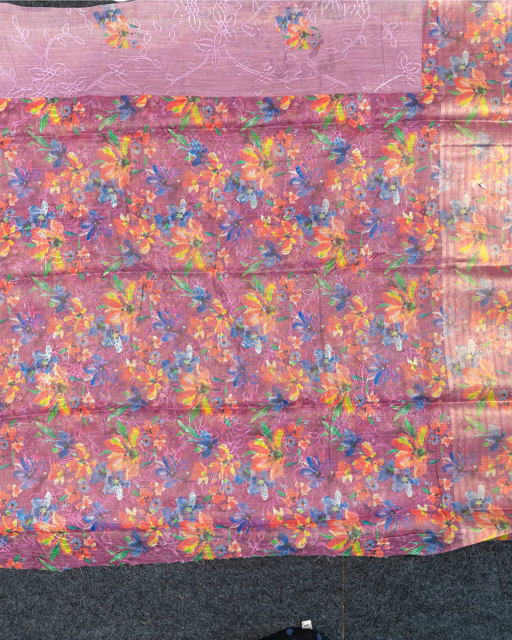 | Description | Elegant tissue saree richly decorated with fine embroidery across the entire body, offering a luminous texture and refined traditional charm. A perfect choice for weddings, festive occasions, and grand celebrations. |