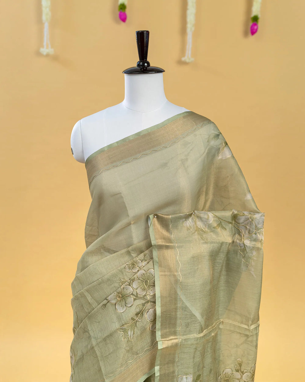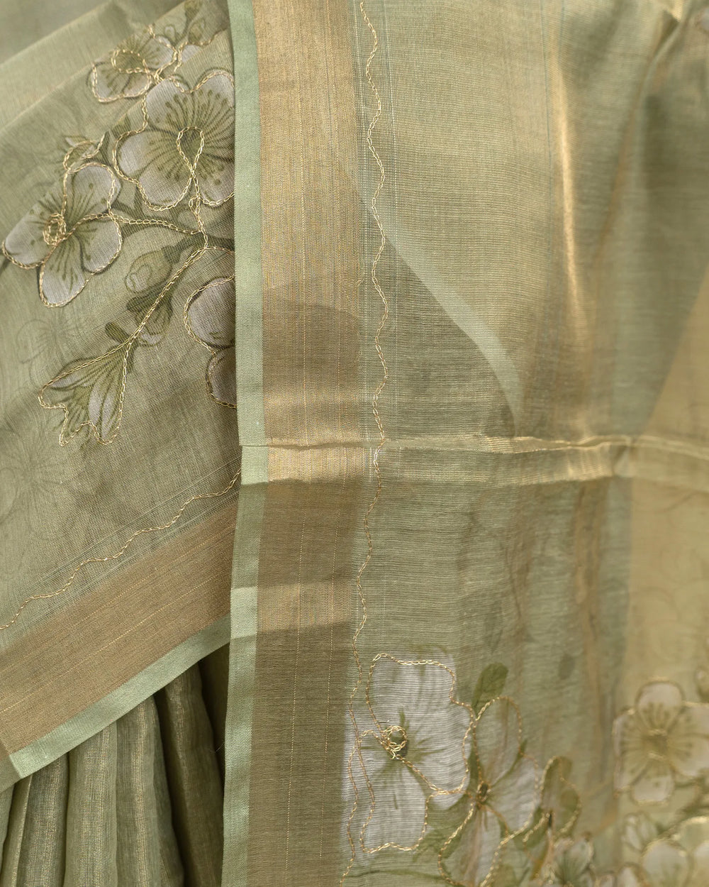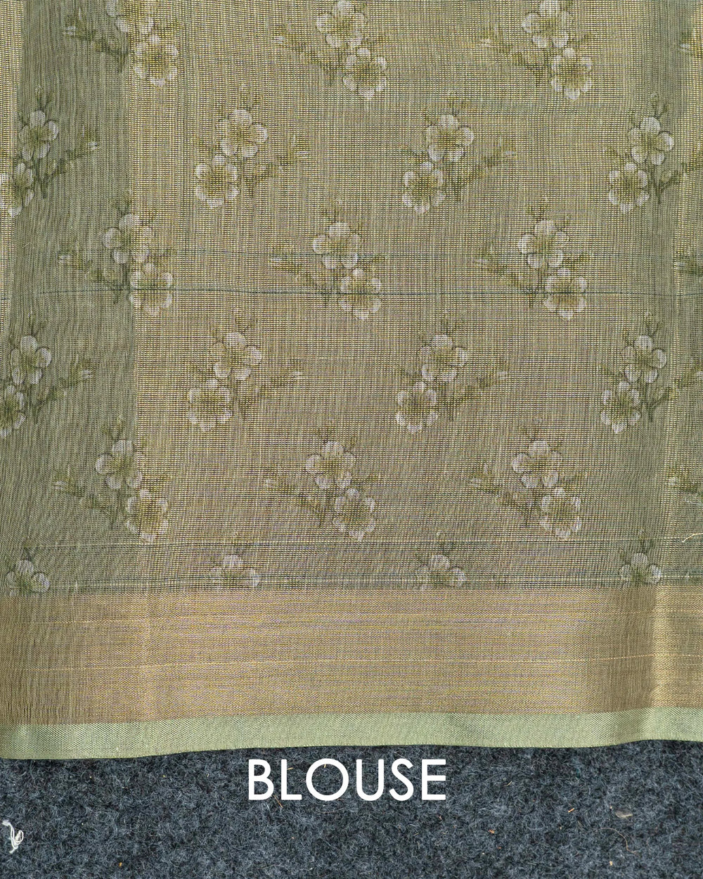 | Blouse | Printed tissue blouse designed to complement the shimmering foil finish of the saree with subtle patterns and a refined touch |