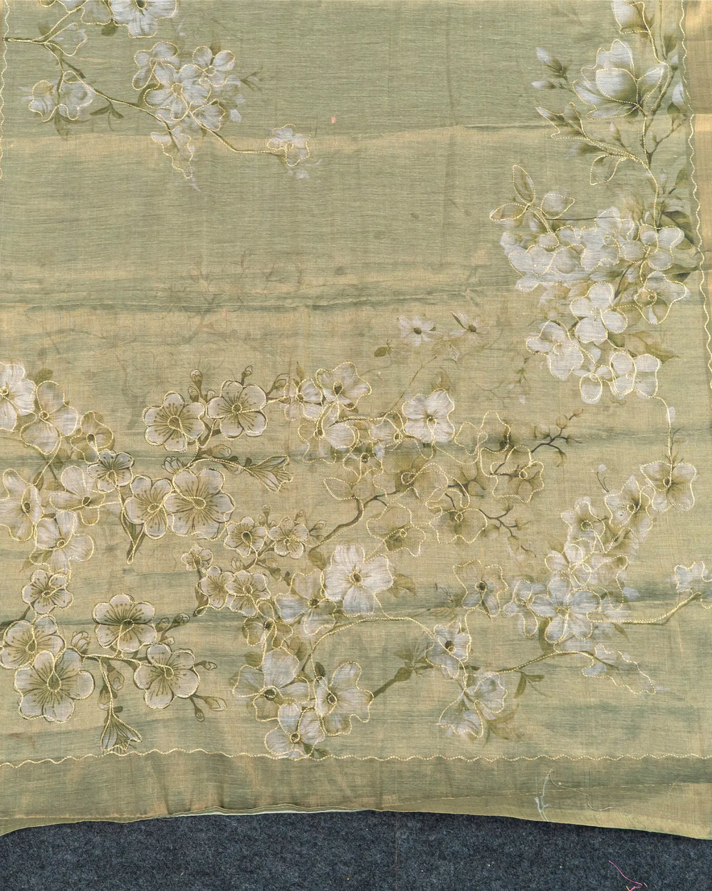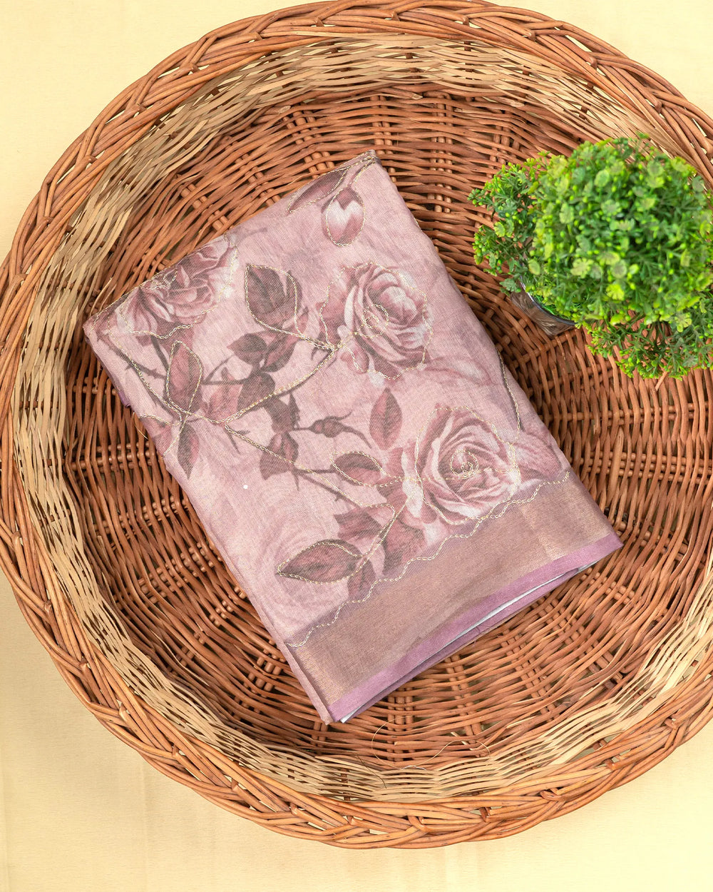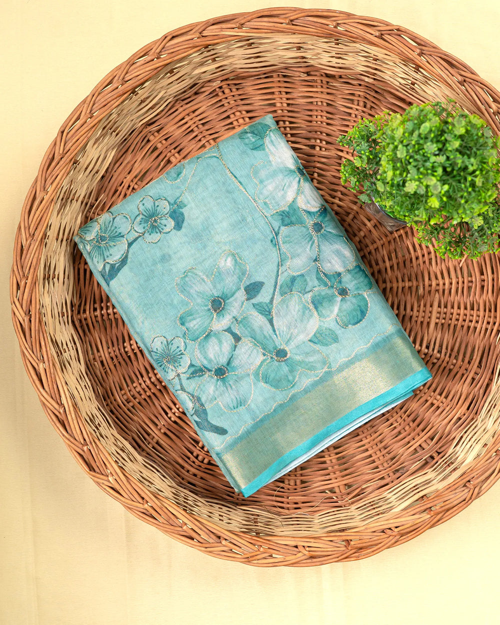 | Blouse | Printed tissue blouse designed to complement the shimmering foil finish of the saree with subtle patterns and a refined touch |