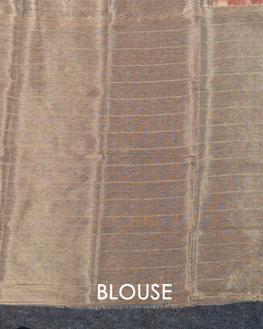 | Blouse | Running blouse detailed with delicate zari lines, designed to complement the saree’s sequence and embroidery accents. |