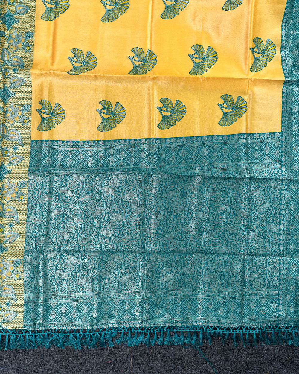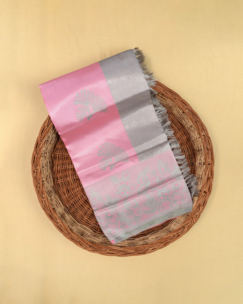 | Description | Elegant tissue saree featuring intricate silver zari meena butta all over the body, offering a traditional and refined look perfect for weddings, receptions, and festive occasions. |