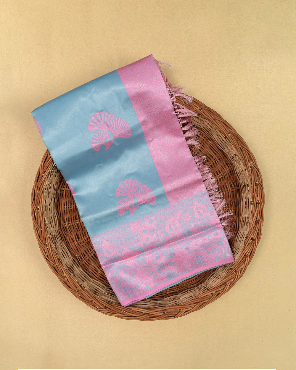 | Blouse | Running butta blouse designed to complement the saree’s silver zari meena butta work, enhancing the overall elegance and sophistication. |