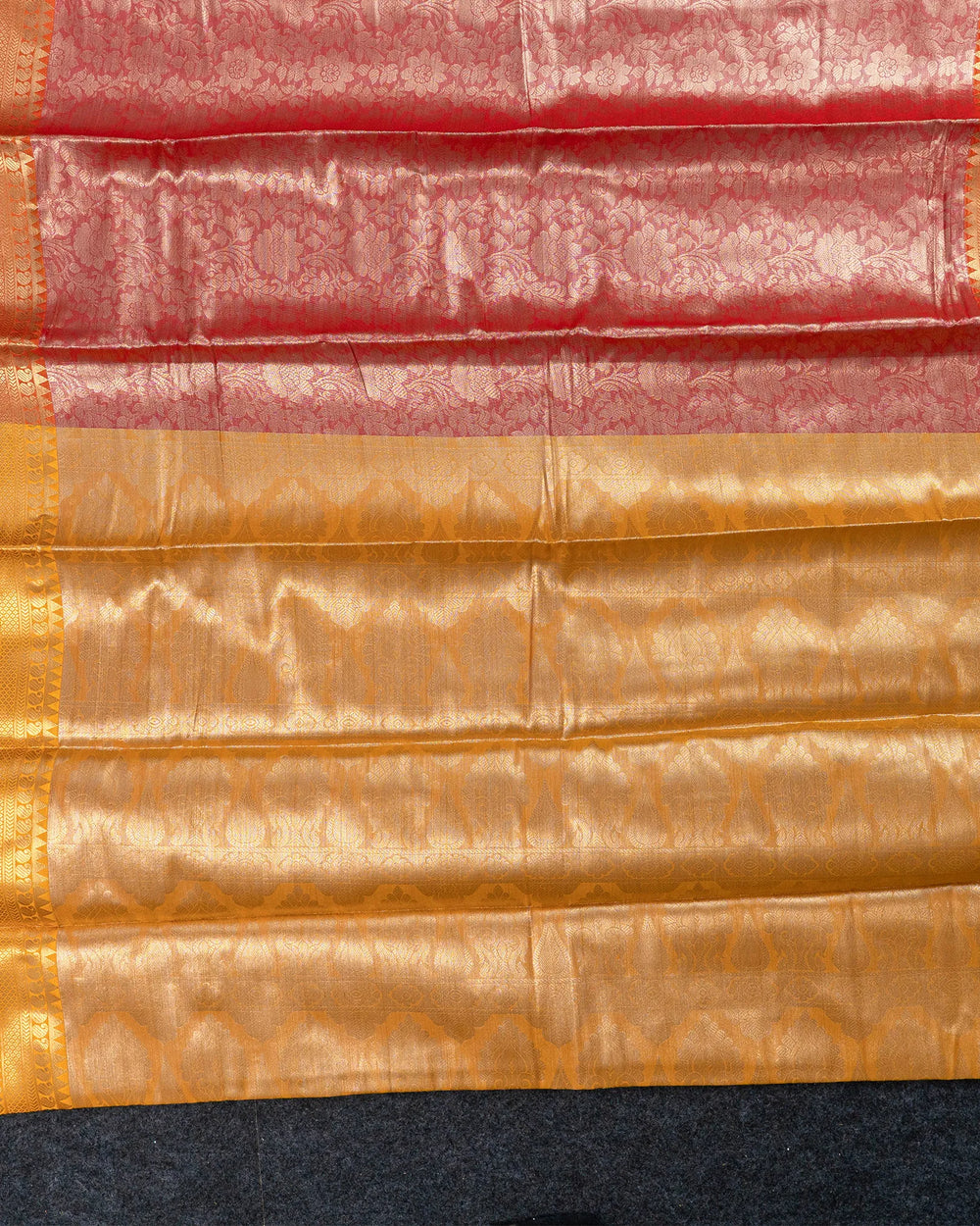 | Description | Elegant tissue saree featuring a beautiful jaquard body design with a contrasting border, offering a refined and timeless look, perfect for weddings, formal events, and festive occasions. |