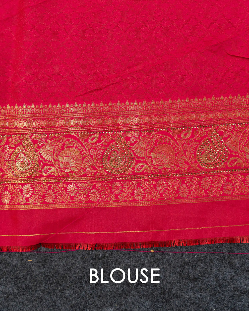 | Blouse | Contrast embossed blouse hand zari with stone |