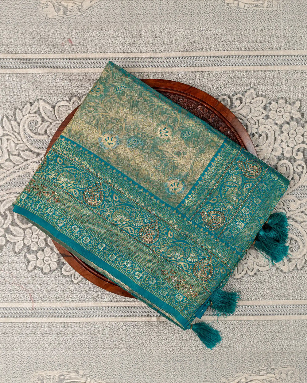 | Description | Elegant tissue saree embellished with Jharkhand stone detailing, perfect for festive and special occasions. |