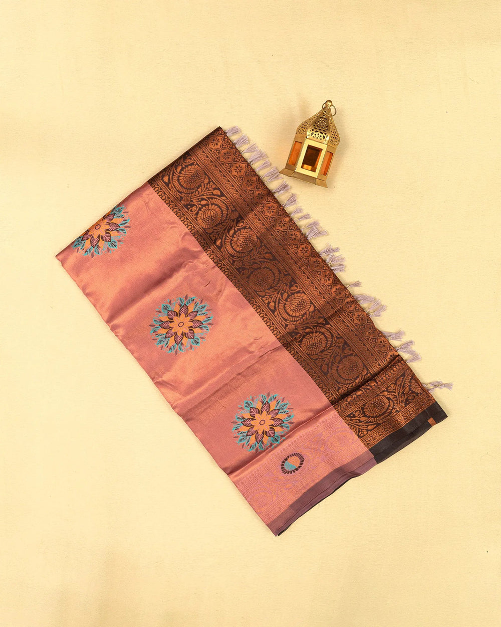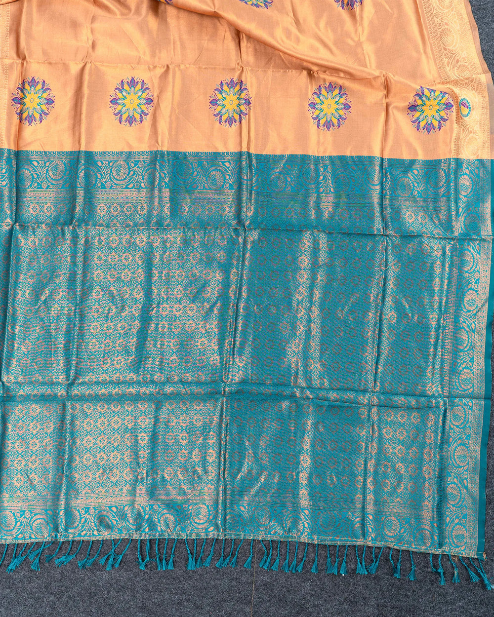 | Description | Elegant tissue saree featuring a beautiful meena body design with a copper border, offering a sophisticated and timeless look ideal for weddings, parties, and formal events. |