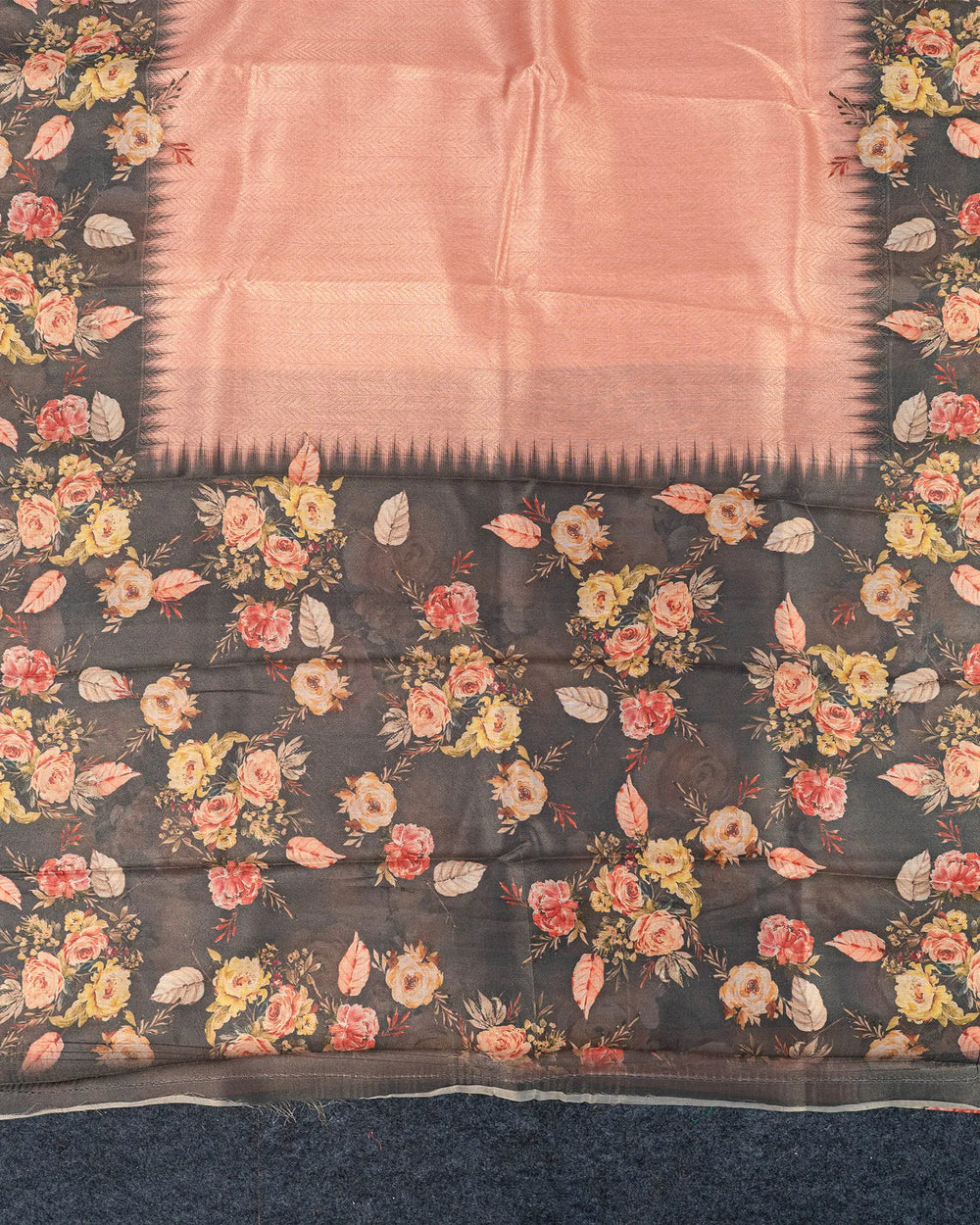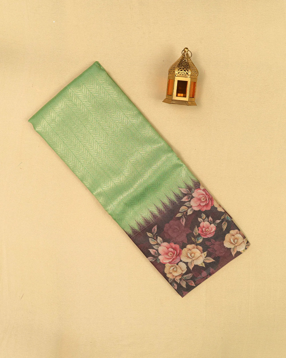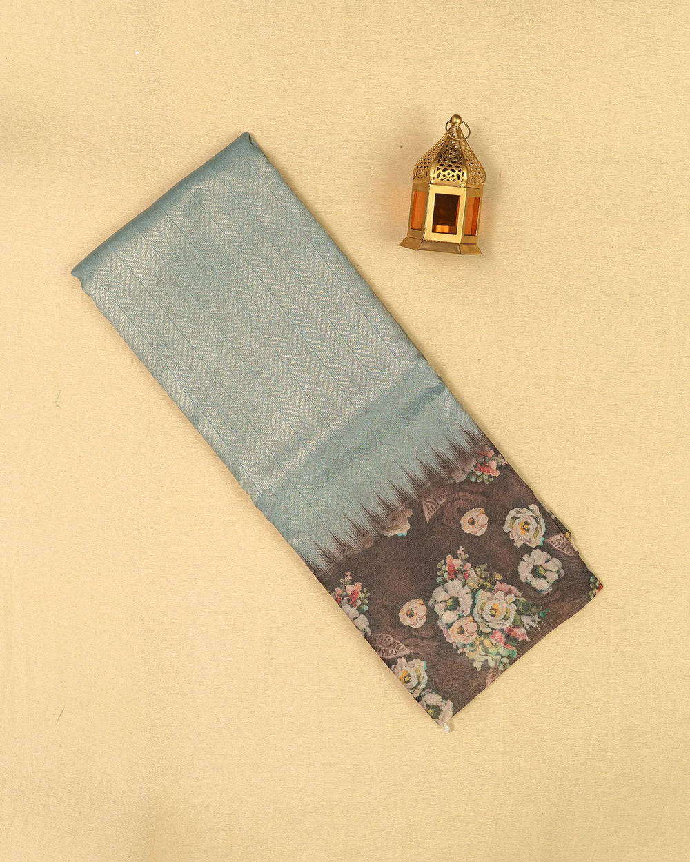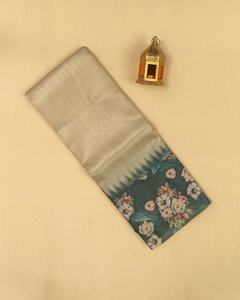 | Style | A classic fusion of traditional zari work with a fancy border and modern digital print blouse, making it an ideal choice for both formal and festive occasions. |