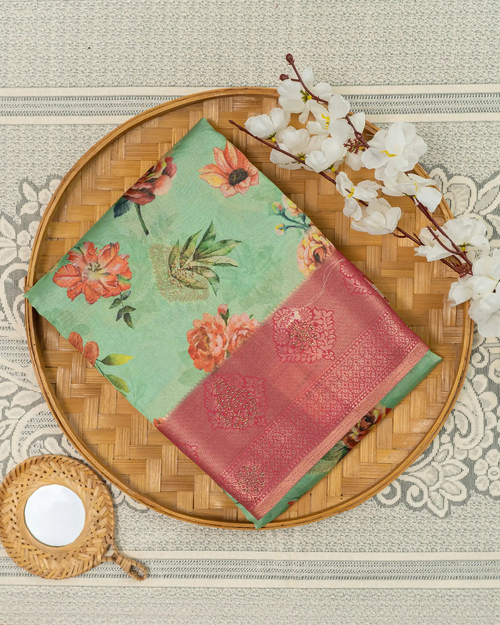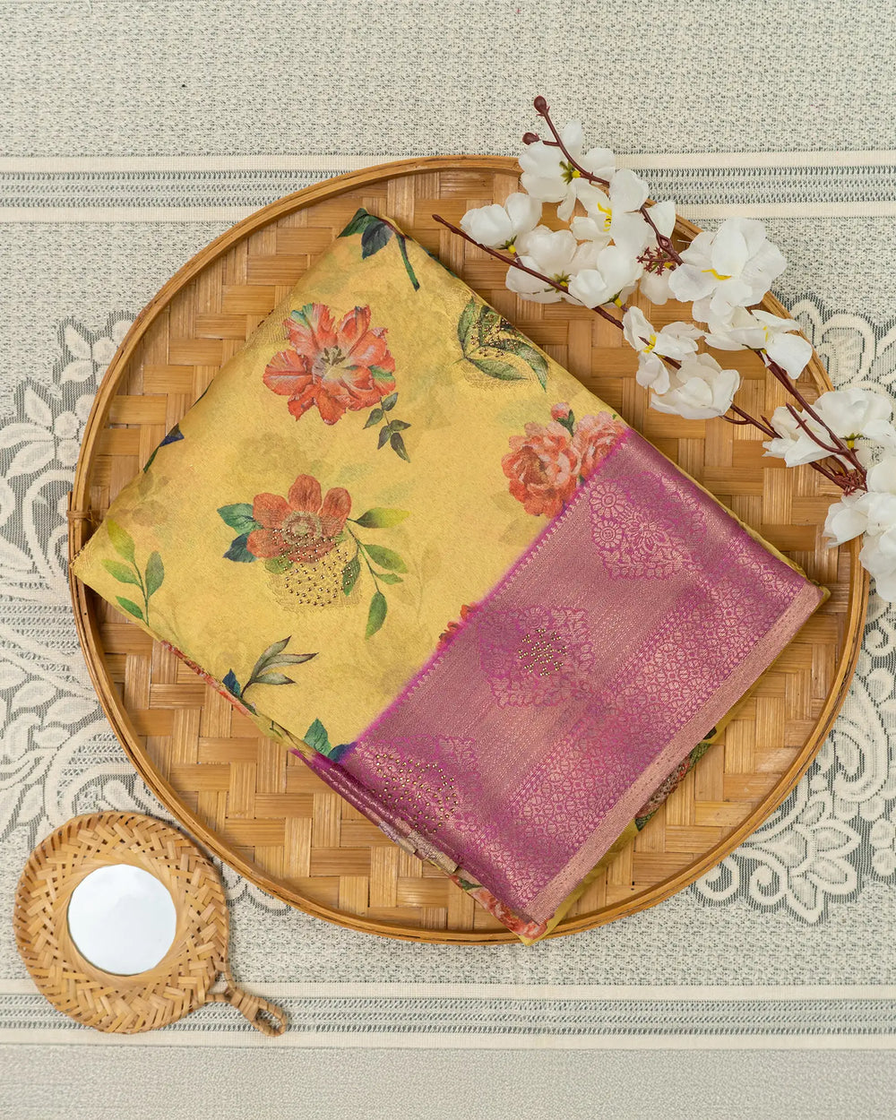 | Fabric Feel | Textured tussar with a soft, lightweight drape |